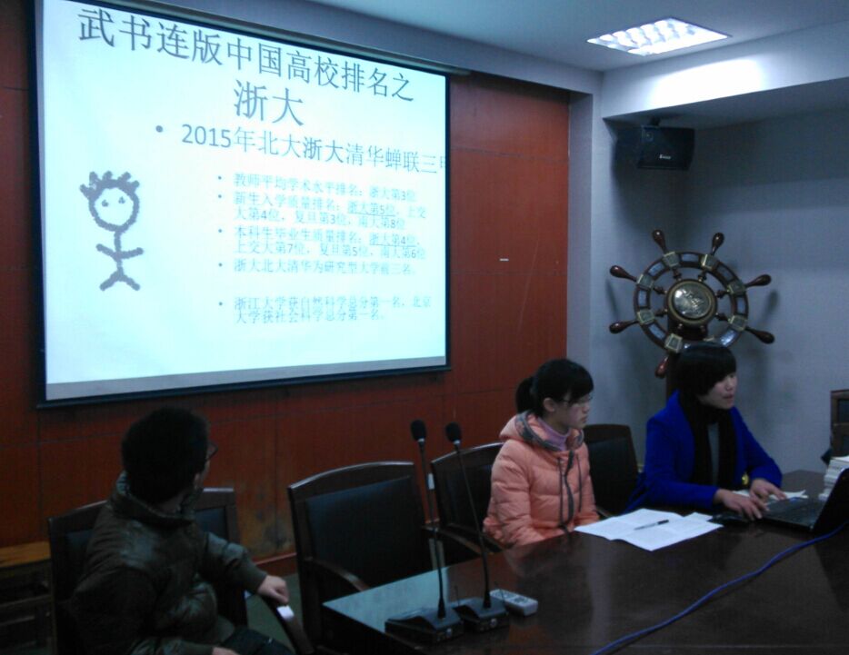为了筹备这次母校回访活动,团队的五名成员精心制作了PPT,不仅从科研实力、学习氛围、社团生活等方面展现出浙大的风采,而且在备考策略、自主招生等高三学子关心的问题上进行了深入的交流。