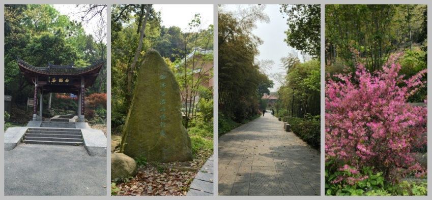 西溪谷游步道,确切的名称是“西溪谷沿山慢行道”, 这是一条靠着西溪谷青翠连绵山脚边的慢行道,路面铺设青石板,偶尔有部分台阶,走在路上,一点也不会觉得累。一路走,一路都是风景,从古荡双口井到桃源坞,沿路有林间幽静、碧峰叠翠、报先梵音、溪流连珠、松径飞霞、茶园绿云、桃源赏春等7个人文和生态景观。