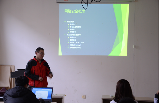 首先主持人金泽宇同学向大家介绍了本次活动邀请到的嘉宾,并大致介绍了本次活动的内容及意义。介绍环节结束后,讲座也就正式开始了,郭旸学长分别从证书是什么,证书的作用以及如何获得证书这三个方面向大家介绍了有关证书的知识。让大家对证书有了一个新的认识。随后互联网分层,Mac地址和Wi-Fi,IPv4协议,IPv6协议,对等网络等知识的讲解,又极大地拓展大家的知识,最后郭旸学长又从域名与网站这些我们耳熟能详的名词上展开,为大家讲述了它们的工作原理。原本晦涩难懂的网络知识在郭旸学长的讲解中变成了生动有趣又贴近生活的内容。