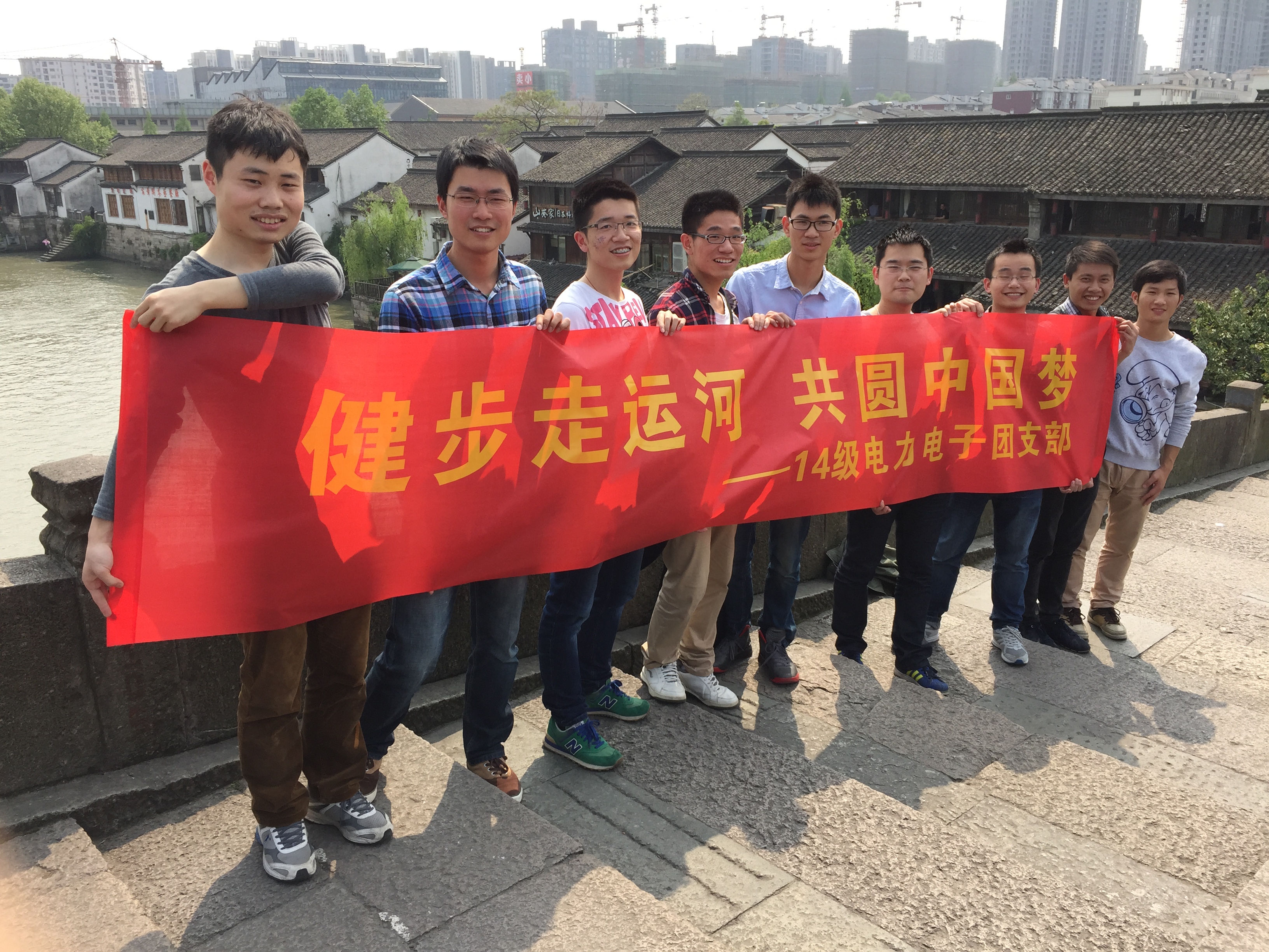 2015年 4月18日,为了让班级团员在忙碌科研生活能在身心上得到放松,从身边的文化遗迹中去提取传统文化的闪光点和精华,结合了大运河文化在杭州历史文化中的影响作用以及活动实践的可行性,由电力电子14级硕士生团支部组织开展的以“青春勇担当,共筑中国梦”为主题的主题团日活动在京杭大运河沿岸正式开展。