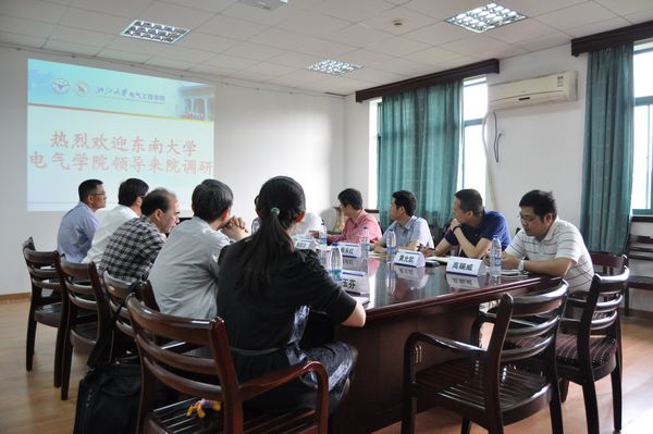 赵剑锋指出此行旨在加强双方学院的交流合作,充分学习与借鉴浙江大学电气学院在人才引进与激励、学科发展规划等方面的优秀经验,在学院领导班子换届的转折点、在“十三五规划”的开局之际,借他山之石以攻玉,全面实现东南大学电气学院的跨越式发展。