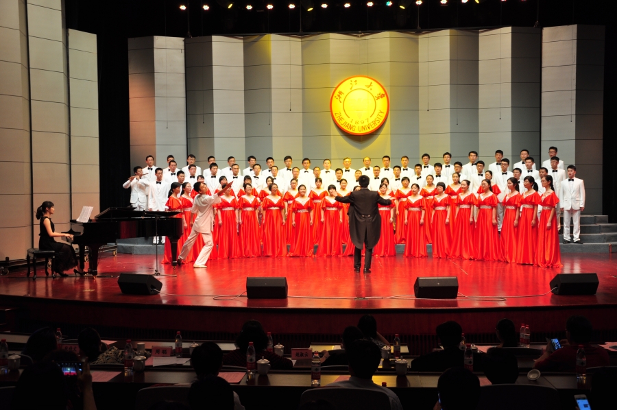 为迎接浙江大学120周年校庆、纪念抗日战争胜利70周年,2015年3月,学校启动“歌咏求是 筑梦中华”主题活动,通过传唱校歌进一步树立全校师生的爱校荣校意识、兴校强校信念,全面把握和深刻理解校歌中所蕴含的求是创新精神、兼容并包气度和振兴中华民族的内涵。《浙江大学校歌》创作于1938年,由著名国学家马一浮作词,著名作曲家应尚能谱曲。校歌文蕴深厚、含义深远、曲韵雅致,曾被教育部新闻办公室官方微博“微言教育”评为最美校歌。