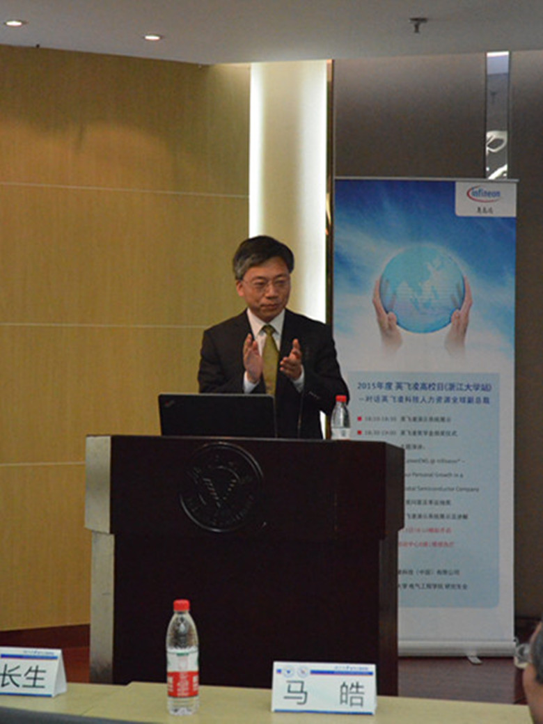 2015年5月13日,浙江大学电气工程学院邀请英飞凌科技(中国)有限公司走进校园,共同举办“名企面对面——英飞凌高校日浙江大学站”活动。通过企业高校日活动让大家有了接触最前沿半导体技术的机会,并且此次有英飞凌全球大学计划负责人Mr. Ralf Memmel出席,给了同学们和全球顶尖的科技公司和工程师交流和沟通的机会。