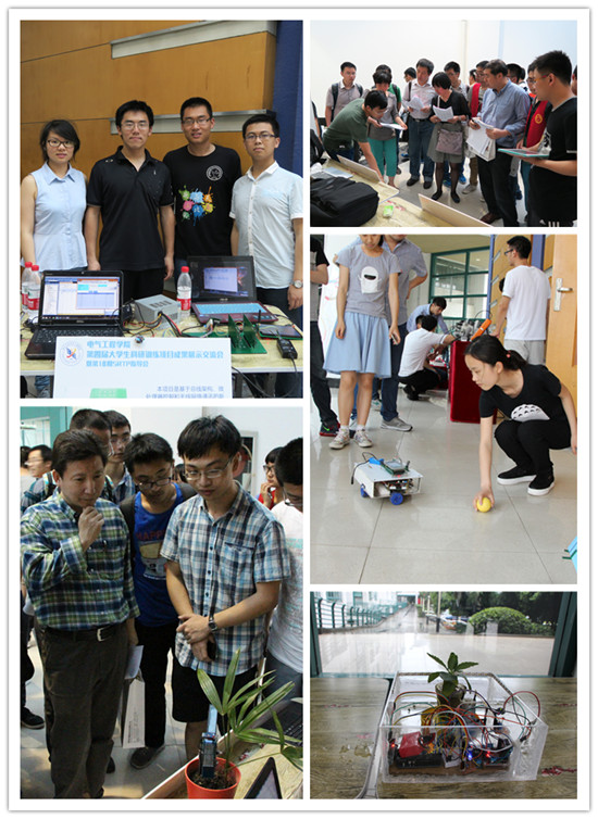 经过一个半小时的展示与交流,老师及同学们回到主会场。大学生科研训练项目优秀指导教师孟濬副教授向同学们分享科研经验,他指出在时代快速变迁的今天我们要多看多学新东西,博学慎思,在学习的过程中能不断提出问题,最重要的是在科研训练中端正态度,认真研究,全心投入。之后电气工程学院科研训练优秀学生代表进行经验介绍,电信11级国创优秀学生代表朱波分享了他在科研训练中的心得,总结为四个词:主动、坚持、高效、拼搏。电气12级国创优秀学生代表杨元威详细介绍了自己的科研路线、科研过程中遇到的困难和克服方法,让同学们对科研训练有一个直观的感受。