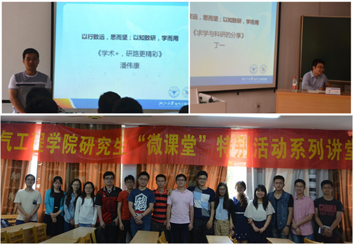 5月20日下午两点,电气工程学院研究生“微课堂”特别活动系列讲堂在电机楼408举办。本次微课堂以“学而用”为主题,坚持问题导向,用理论知识解决实际问题,旨在以师生不同的角度,分享以学致研的历程与经验,并有幸邀请到了学院优秀青年教师丁一老师,以及优秀博士生潘伟康学长。