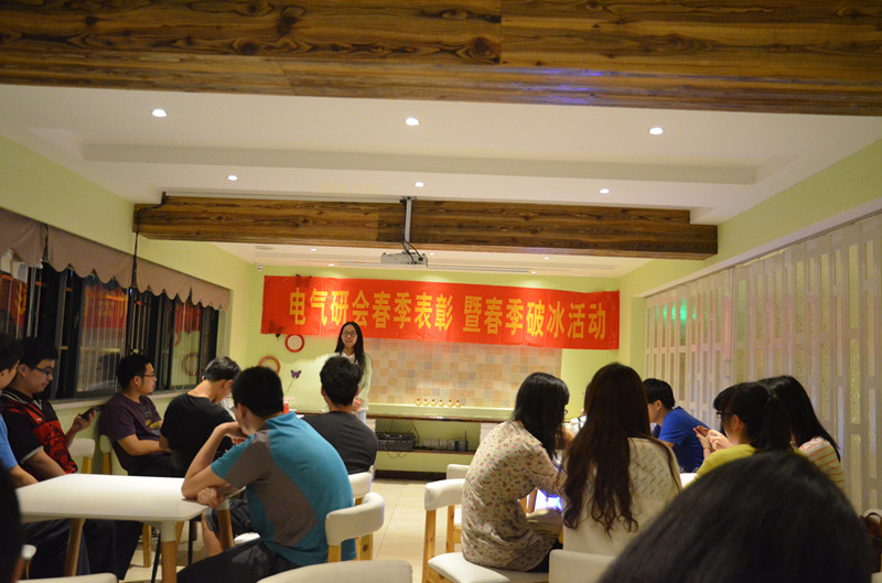 5月21日晚上8点30分,浙江大学电气工程学院第十五届电气研会春季表彰大会暨春季纳新破冰在玉泉校区“1897”成功举行。电气研会主席赵睿、主席团成员黄帅、徐艺绯、刘曌煜、暴英凯以及各部门部长、成员均参加了本次会议。春季纳新为电气研会的大家庭注入了新鲜的血液,新成员的加入使电气研会焕发了新的活力,他们也在此次会议中初次报道。