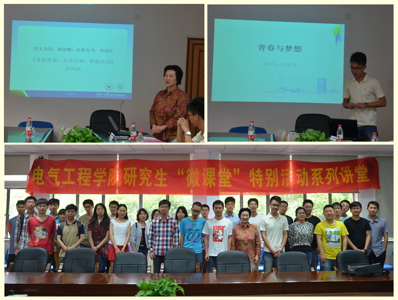 2015年5月26日下午14:00,电气工程学院研究生“微课堂”特别活动系列讲堂最后一讲在电机工程楼201举行,本次活动有幸邀请到了浙江大学党委宣传部原副部长彭凤仪老师,以及优秀学长闫文博作为主讲嘉宾,学院党委副书记王玉芬老师也出席了本次活动。