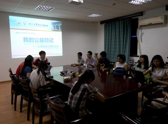 2015年6月19日,伴着夏日傍晚的阵阵蝉鸣,电气1201和电信1203团支部的成员们欢聚在教二405,开展以“我的公益日记”为主题的公益经历分享交流会。两个班的团支部成员悉数到场,在电气1201班团支书张启翔同学的主持下,交流会内容充实,气氛活泼,受到所有参会同学的好评。