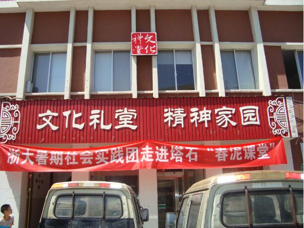 阳光正好,明媚了阴翳。根据前一天的会议内容,实践队员们定下具体的分工、宣传方案、宣传路线、报名时间和地点、注意事项等等,之后,便是挂横幅、布置报名场地。横幅很高,挂起来并不容易,但凝聚了大家的力量,鲜艳的横幅在风中飘扬,就如我们的热情洒遍塔石这片土地。
