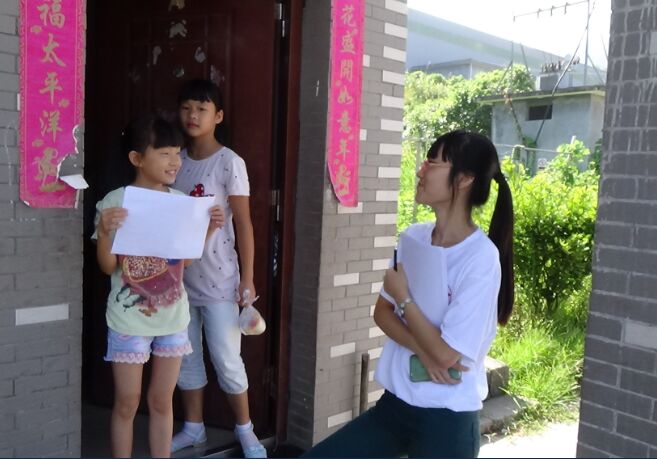 塔石街道村民的居所星罗棋布地散落在这座静谧唯美的乡村。为了能够招收到足够的学员,我们分作三个队伍,沿着不同的方向进行“地毯式”的宣传。乡村的生活是闲适,自由,甚至是些许散漫的,没有什么极有规律的生活节奏,所以早上道路上的小孩子并不多,而我们能做的,便只能是到一个一个村民的家中、楼下拜访,宣传。