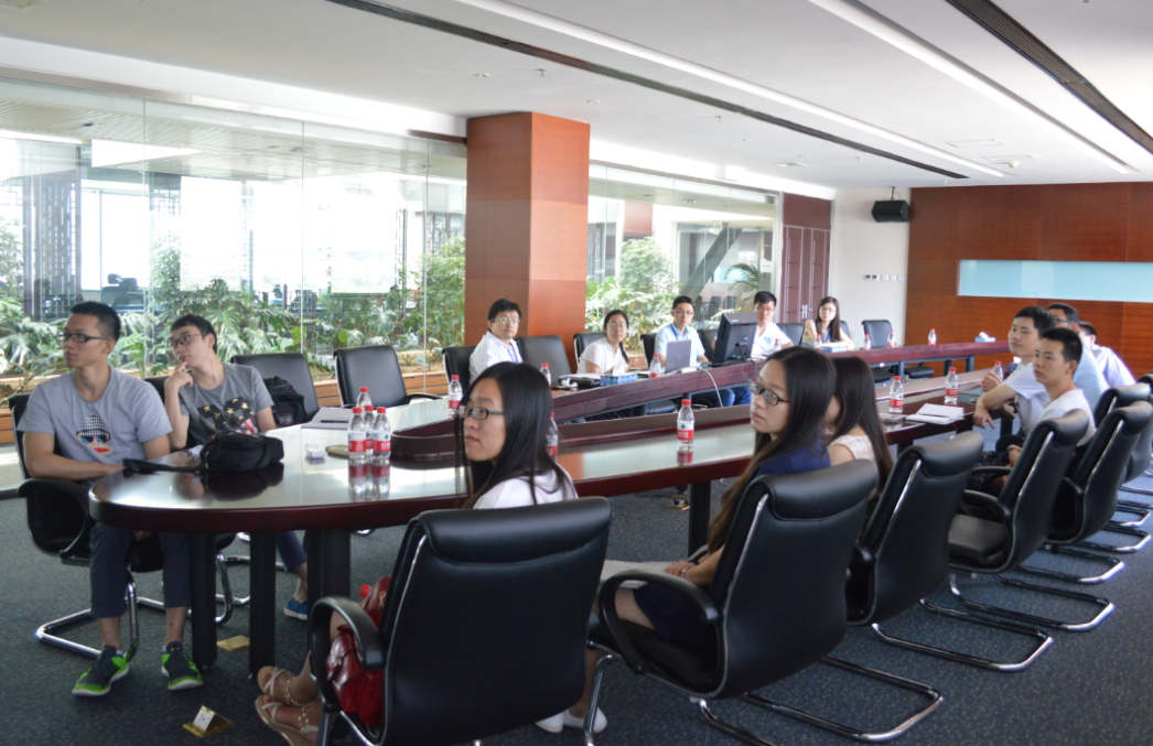 公司的技术团队先是对本公司的业务、产品原理及关键技术等作了详细的介绍。介绍时,同学听得很认真,也足有兴趣,并仔细做了笔记。之后,大家对感兴趣或有疑惑的部分进行了讨论。