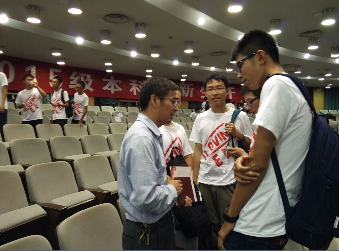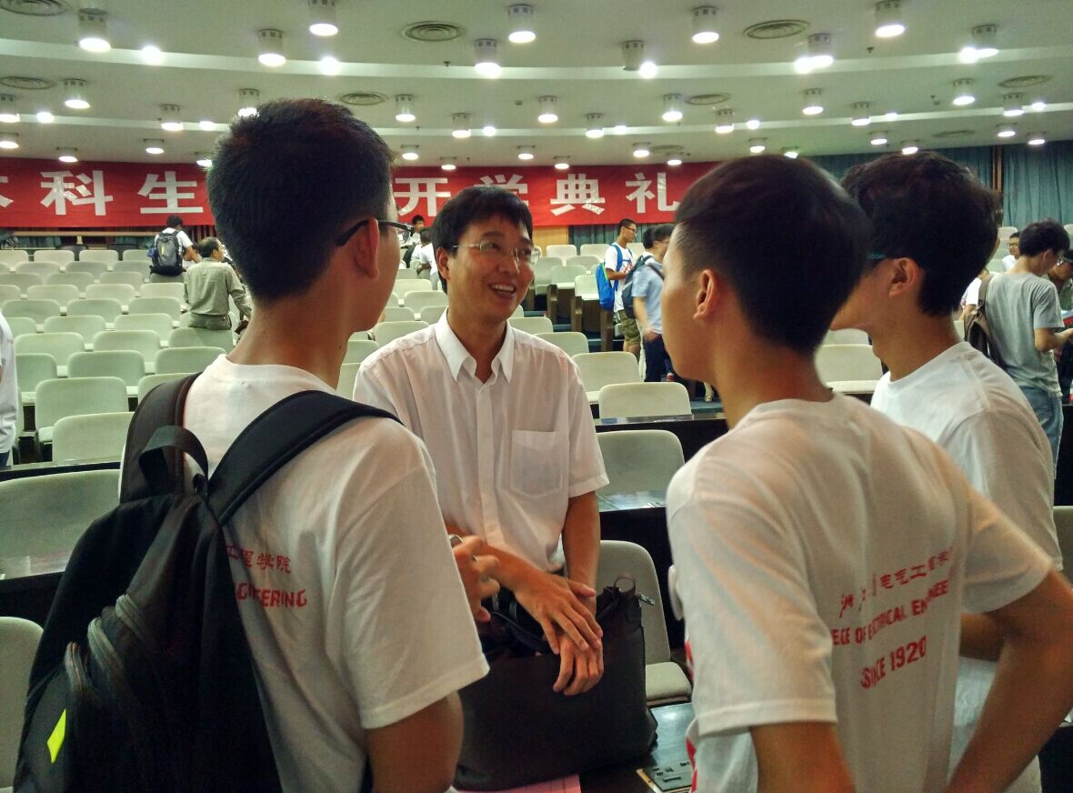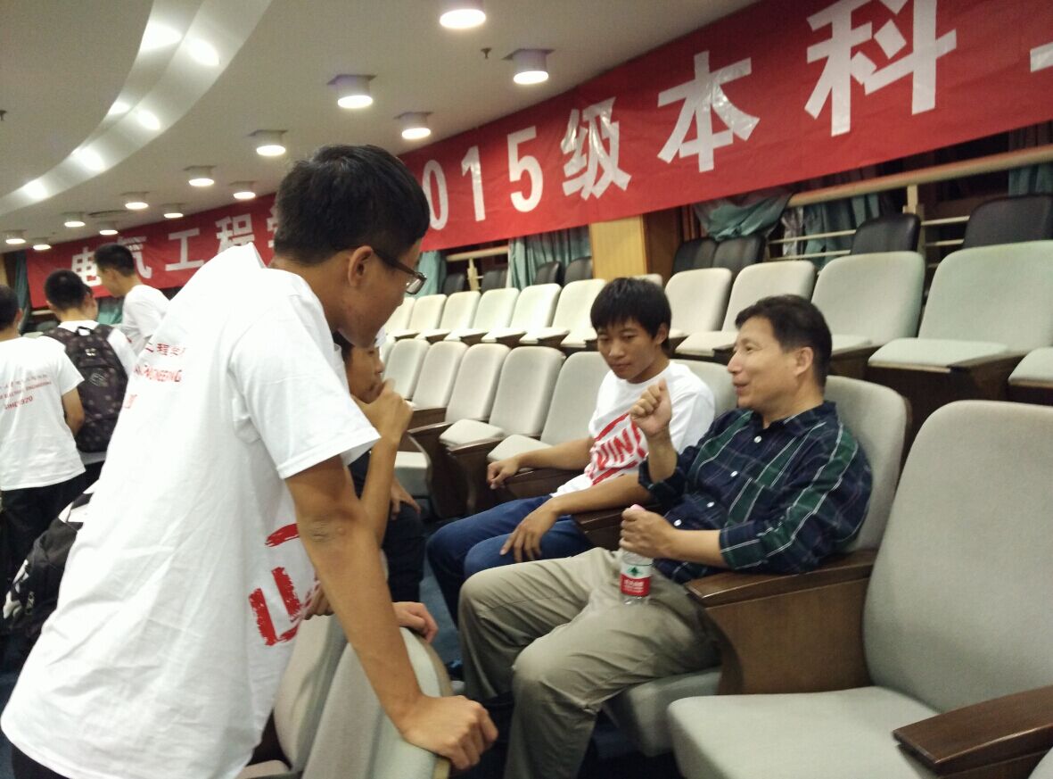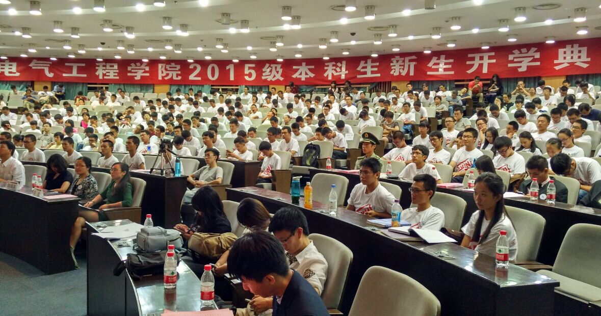 9月24日晚上,电气工程学院2015级新生开学典礼在国会225举行。台下坐满了电气学院的新生,与以往不同的是,此次新生典礼有许多老师也穿插着坐在其中,他们就是学院2015级的新生之友们。