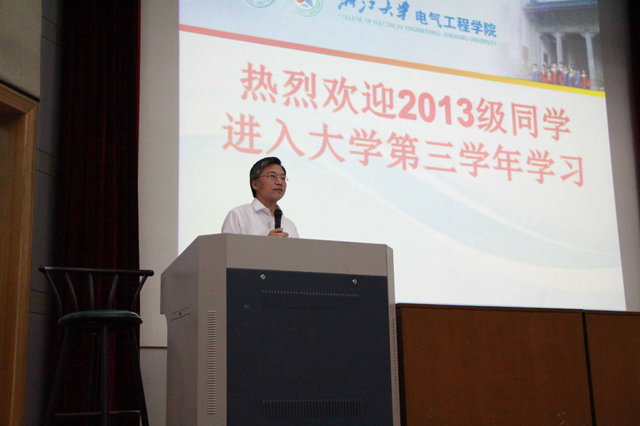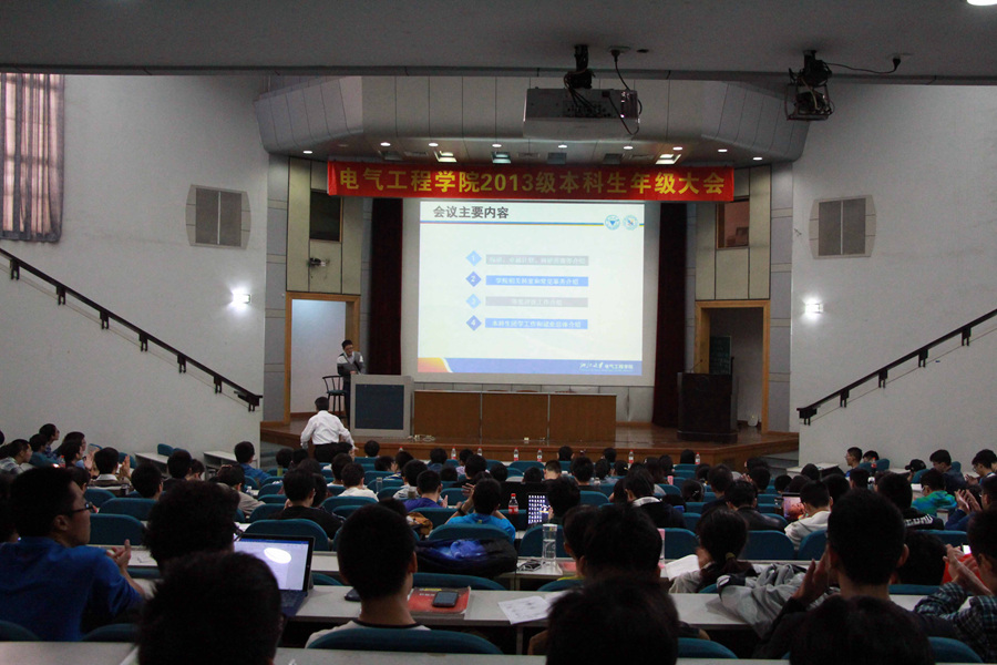 为了更好地帮助2013级本科生做好从学园到学院的过渡,全面了解学院内与学生密切相关的政策,从而更好地规划自己的未来,明确自身的目标,电气工程学院于10月16日下午13:30在玉泉校区教七影视厅召开了2013级本科生年级大会。电气工程学院副院长马皓老师,学院本科生科科长杨敏虹老师,学院团委书记陈敏老师,团委副书记卢俏老师、李涛老师、赵梓杉老师出席了本次大会。参加大会的还有电气工程学院全体2013级本科生。大会由团委副书记、2013级辅导员李涛老师主持。