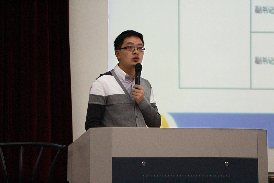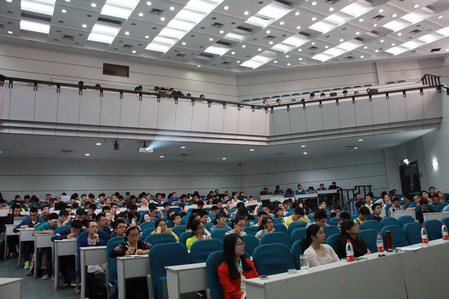 大会开始,马皓老师为同学们进行科研训练、学科竞赛、卓越计划以及免研政策的宣讲。马皓老师主要从卓越计划的提出背景和它对现今大学工科教育的重要性两方面向同学们讲解了卓越计划的具体内容,并对卓越计划在2013级的具体实施方案进行了详细的介绍。马老师在解读免研加分政策时强调“不要为了加分而加分”,而是要在争取加分的过程中提升自我能力和素质,并给同学们接下来的两年学习提供了一些建议。接下来学院本科生科长杨敏虹老师对本科生培养方案进行了详细的解读,并提醒同学们有关课程学分修读方面的注意事项。在学科竞赛和科研训练的权衡中,杨敏虹老师推荐大三的本科生从二者之中选择一项认真对待。