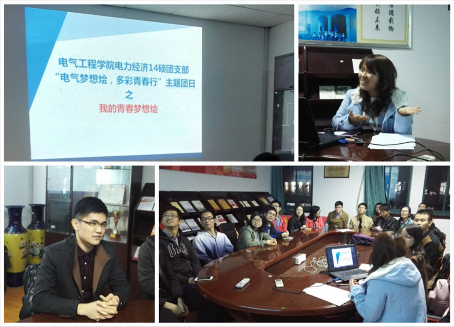 浙江大学电气工程学院电力经济2014级硕士团支部于11月10日,在玉泉校区第二教学大楼党员之家开展了一次主题为“青春与梦想同行”的团日活动。