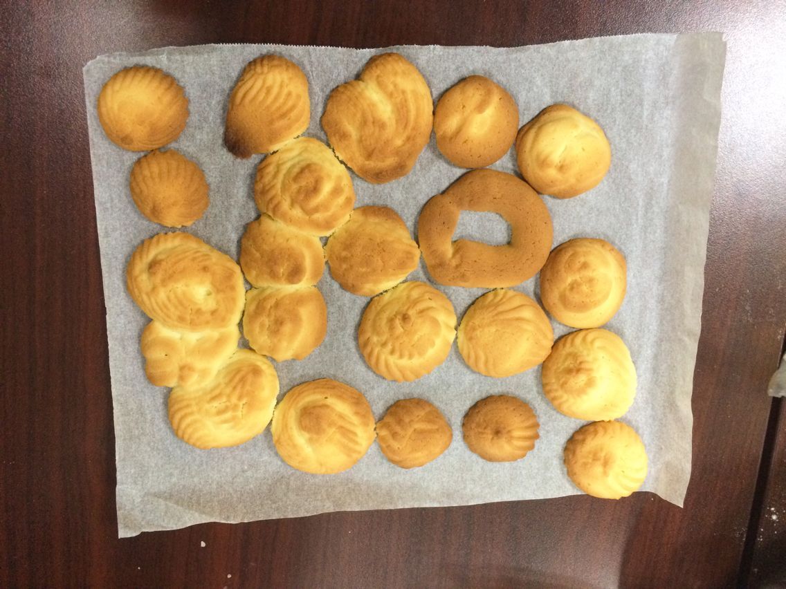 其中还有位老爷爷拿着相机,记录着整个过程,很有学习精神。最后的最后,将曲奇放入烘焙烤箱,等待十多分钟。第一盘曲奇出炉时,香味溢满整个房间,大家都上前拿了小块放在嘴里,从每个人的甜甜的笑容中可以想象出自己亲手制作的曲奇有多么好吃,“纯手工,无添加剂,新鲜出炉的”。