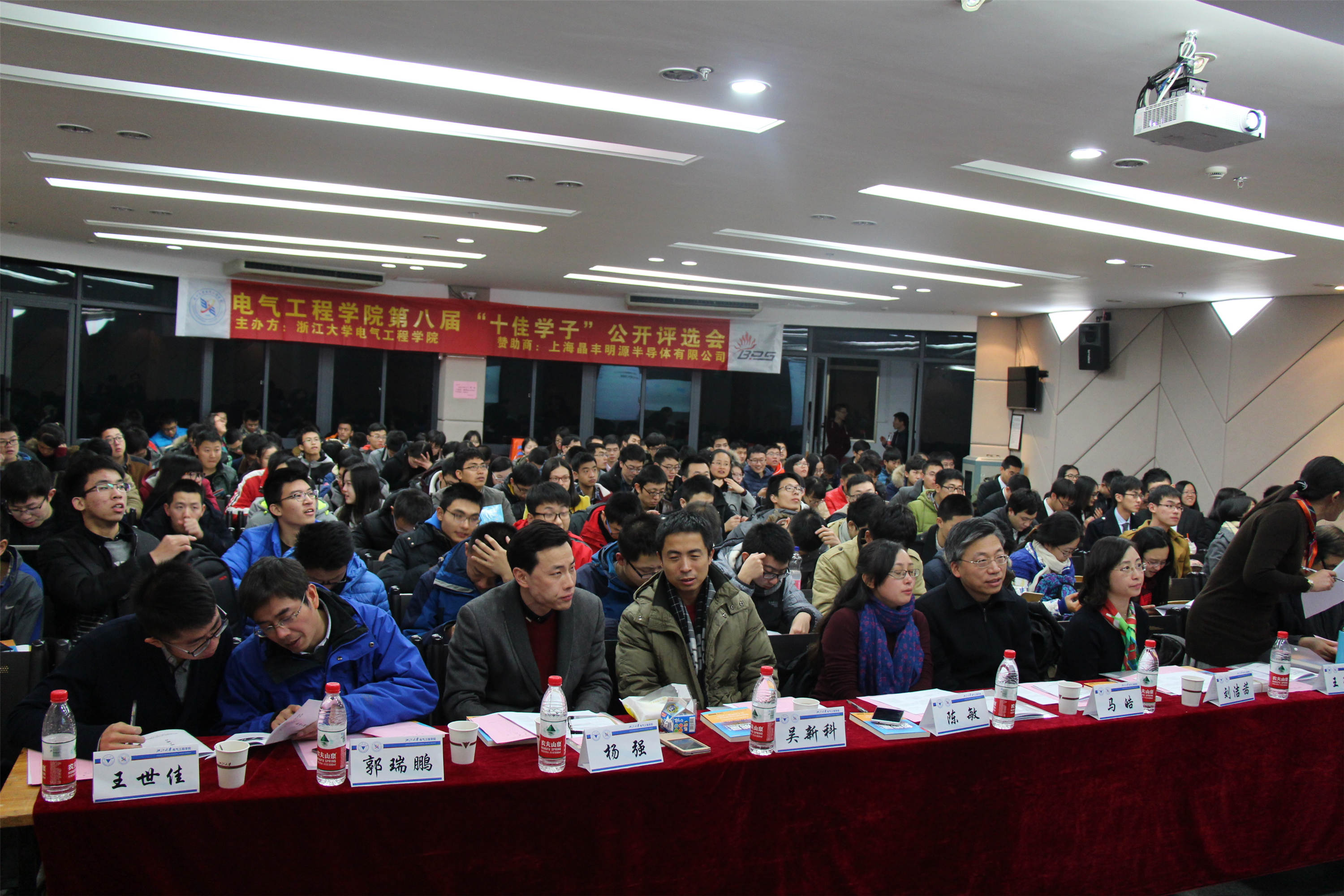 12月18日晚,浙江大学电气工程学院第八届“十佳学子”答辩会在永谦剧场第二报告厅顺利举行。上海晶丰明源半导体有限公司联合创始人刘洁茜,电气工程学院副院长马皓,党委副书记王玉芬,团委书记陈敏,浙江省教学名师潘再平,心平杰出教学贡献奖获得者姚缨英,国家优秀青年科学基金获得者吴新科,优秀班主任杨强,电气1404班班主任郭瑞鹏出席了本次公开答辩会。此次答辩会还邀请到了博士生会主席王世佳同学、研究生会副主席刘思同学,学生会主席王琳同学以及150余位学生评委。