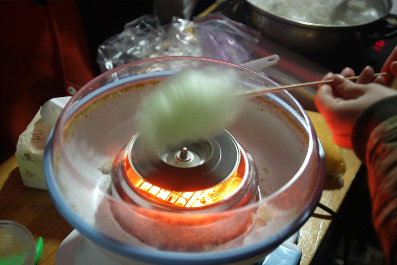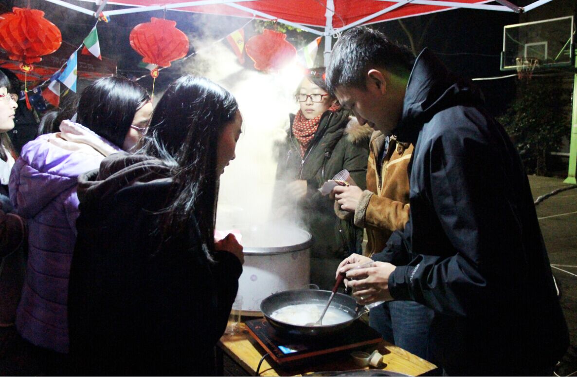游戏分区分为九个模块,每个游戏都是组织者精挑细选的结晶。排队者跃跃欲试,比试者步步为营,围观者拍手称快,现场俨然是一片欢乐的海洋。在雾气氤氲的美食分区,食物的香气阵阵扑鼻,无论是微波炉中砰砰作响的爆米花,还是竹签上翻飞的棉花糖丝,亦或是锅中翻滚浮沉的水饺和丸子,无一不散发着浓浓的暖意,大家有秩序地排队兑换,或者和工作人员亲切聊天,好不热闹。