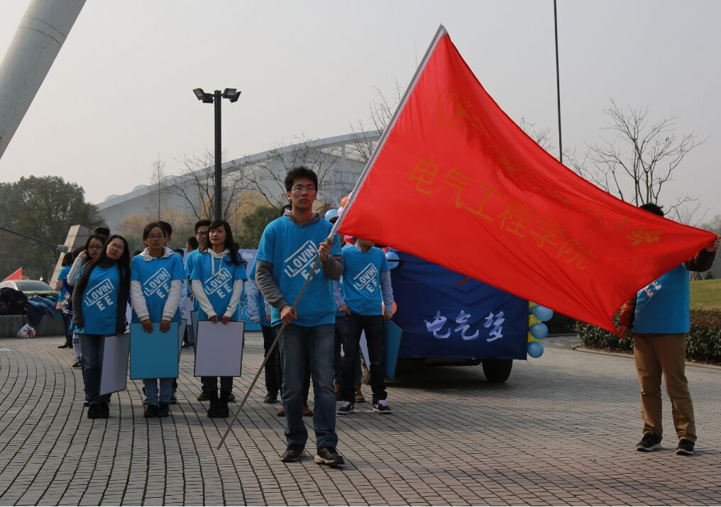 检阅过后,方阵巡游正式开始。承载着电气学院师生对新的一年美好祝福的花车缓缓驶向马路,向阳光正灿的方向进发。