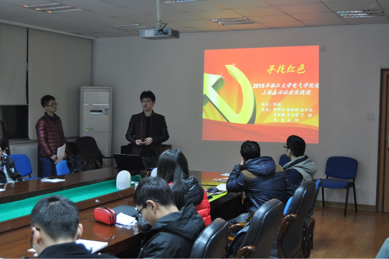 颁奖环节过后,主持人带领大家进入了优秀团队实践历程和实践成果的分享环节。本次会议中分享展示的三支队伍分别是赴浙江龙泉暑期社会实践团队、赴杭州北星社区暑期社会实践团队、赴上海、嘉兴暑期社会实践团队。其中赴浙江龙泉社会实践队伍代表重点介绍了实践内容,以“春泥课堂”为主,中间穿插了社会调研和基层挂职锻炼活动。精彩充实的展示取得了在场观众的热烈掌声。赴杭州北星社区社会实践队伍代表从项目立项策划开始,向大家交流了社会实践开展的整个过程和各个细节,通过丰富多彩的活动,为北星社区人们展示了电气学子的风采。以红色教育、红色文化寻访为主题的赴上海、嘉兴社会实践团队代表讲解非常生动精彩,带领大家观看精心准备的社会实践微视频,将会议气氛逐渐推向了高潮。通过这些优秀社会实践队伍的展示,同学们汲取了经验,对社会实践有了进一步的认识。