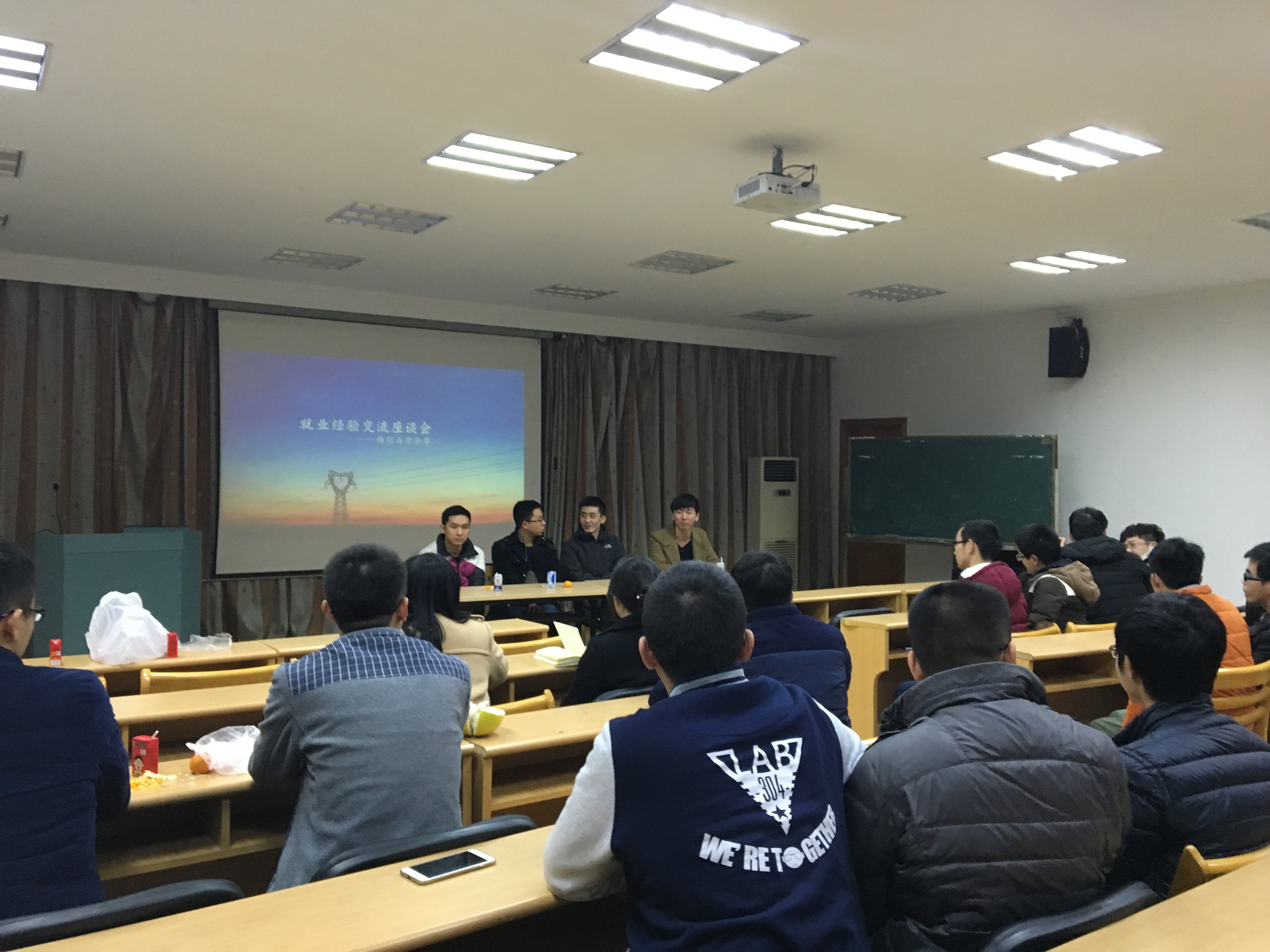 基于前期的充分准备,2016年1月6号,电力经济14硕党支部在电机楼418进行了学长与同学们面对面的就业经验分享座谈会。