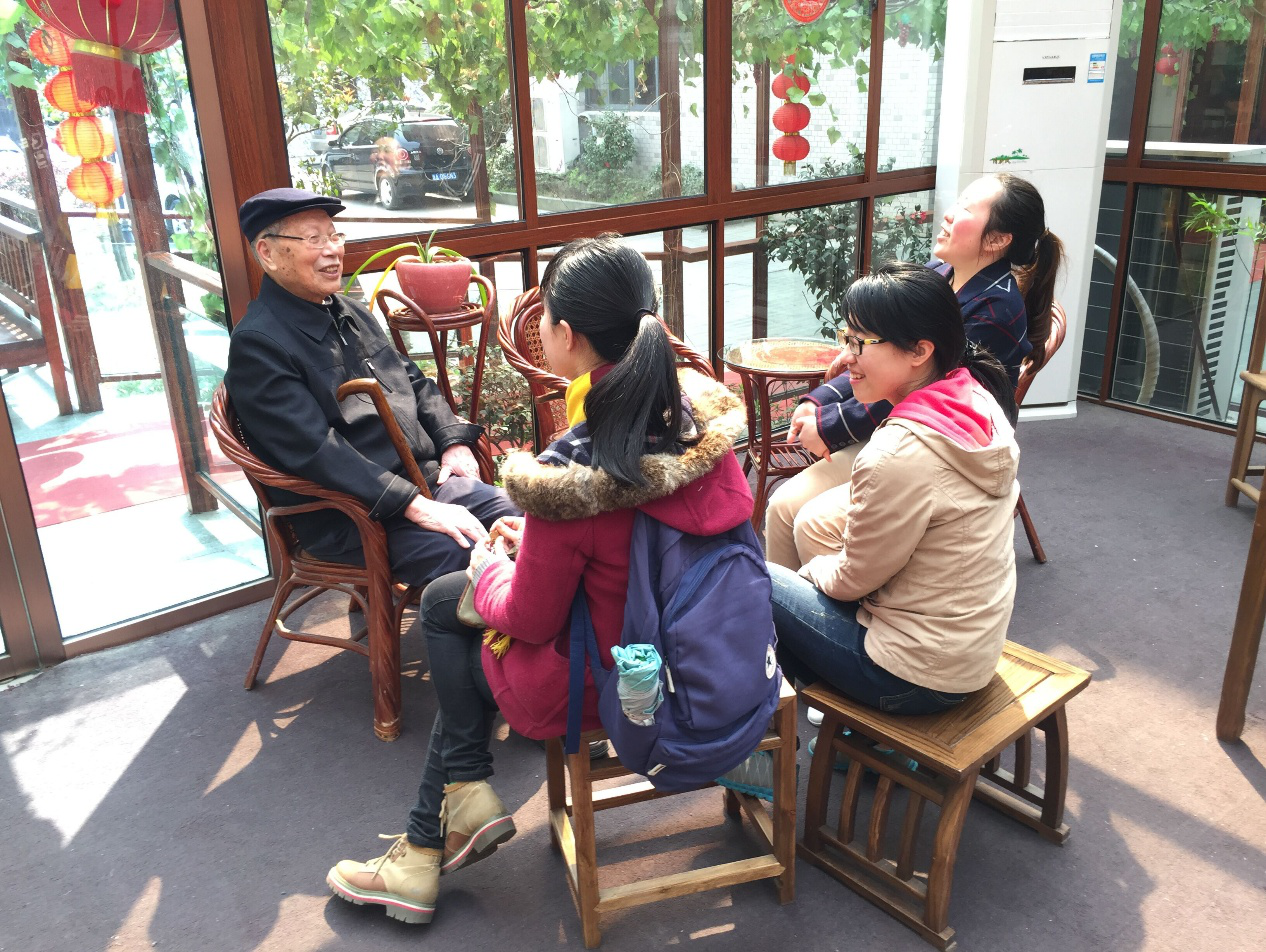 之后,我们按照之前的分组,有序地开展着活动。部分同学到老人房间里帮助老人打扫卫生,陪老人聊天。有趣的是,在这个过程中还遇到了浙大的退休老教授,热情的老教授还向我们传授各种软件的应用技巧。另外一部分同学留在老人活动室陪老人娱乐。一些同学陪老人下棋,对弈甚欢;一些同学陪老人联系书法,向老人求教学习;还有一些同学陪老人聊天,老人们向我们讲授当年抗美援朝时候的光辉事迹,讲授养生之道。