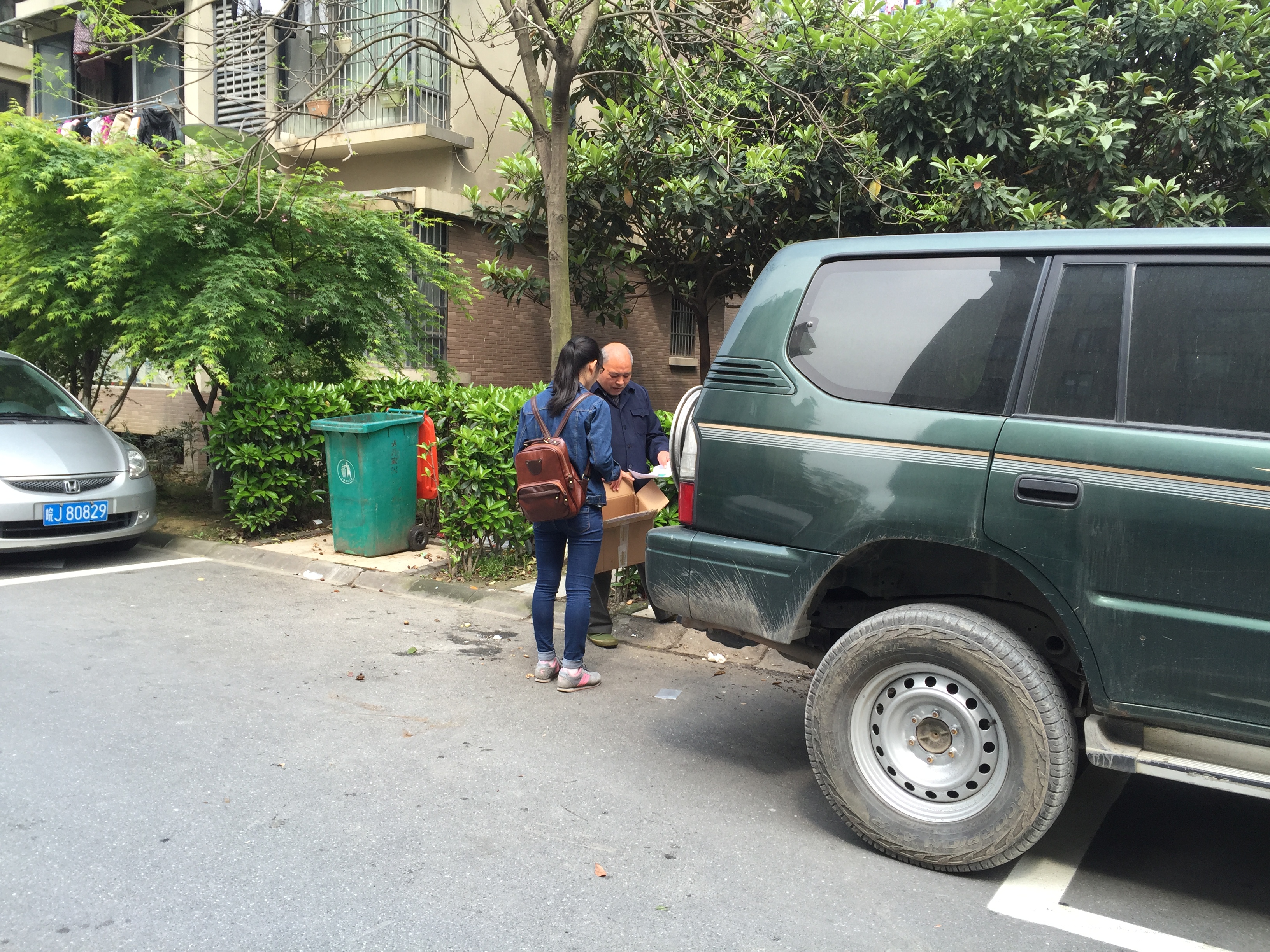 到达秀月小区南区后,在小区负责人的指导下,志愿者们纷纷拿好传单,兵分三路散开到小区内部各处进行宣传。