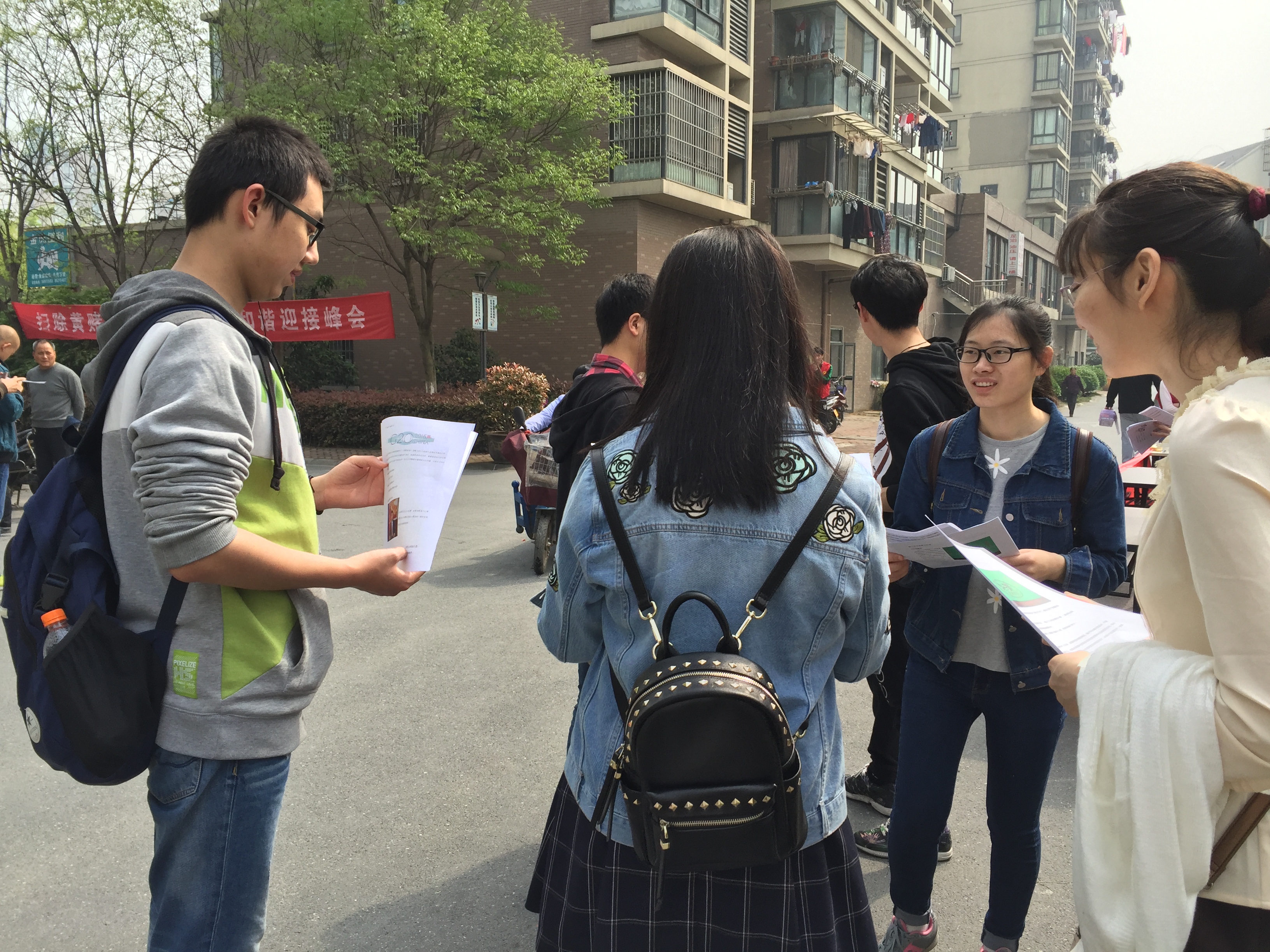 4月9日上午,伴着温暖的晨光,电气学院自动化1301和1302团支部共12名学生,在玉泉校区北门集合,前往秀月小区南区,参加了由电气工程学院团支部牵头举办的六进社区活动。在这次活动中,不仅秀月小区的居民们了解了更多的关于G20峰会的相关知识,参与的志愿者们也收获了一个愉快、充实的上午。