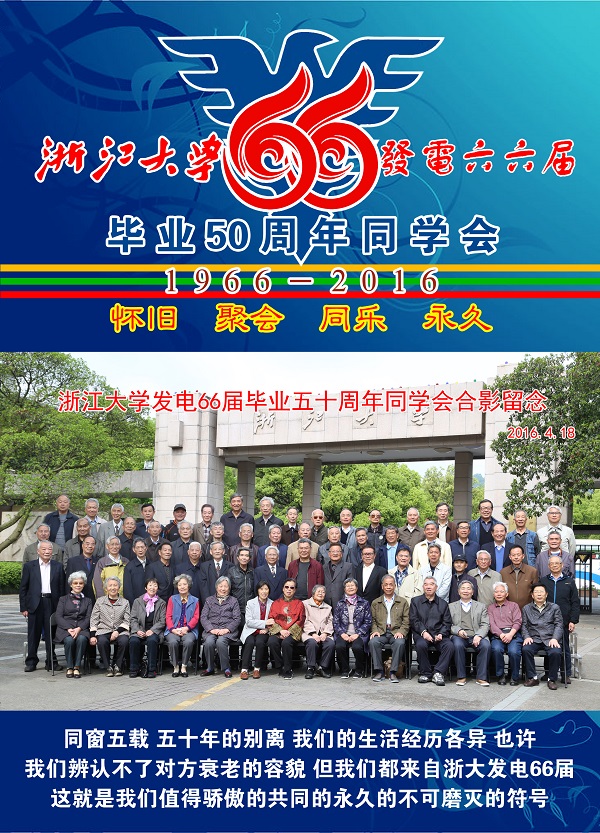 4月18日正是杭州春光明媚、百花齐放的美好辰光,电气学院(原电机系)发电61级80多位校友及家属,从天南地北接踵而来,相聚在西子湖畔的浙大玉泉校区,举行毕业50周年聚会活动,追忆昔日求学时光,畅叙对母校眷恋之情。有校友行动不便,也由家人陪伴特地赶来相聚,其情弥足珍贵。