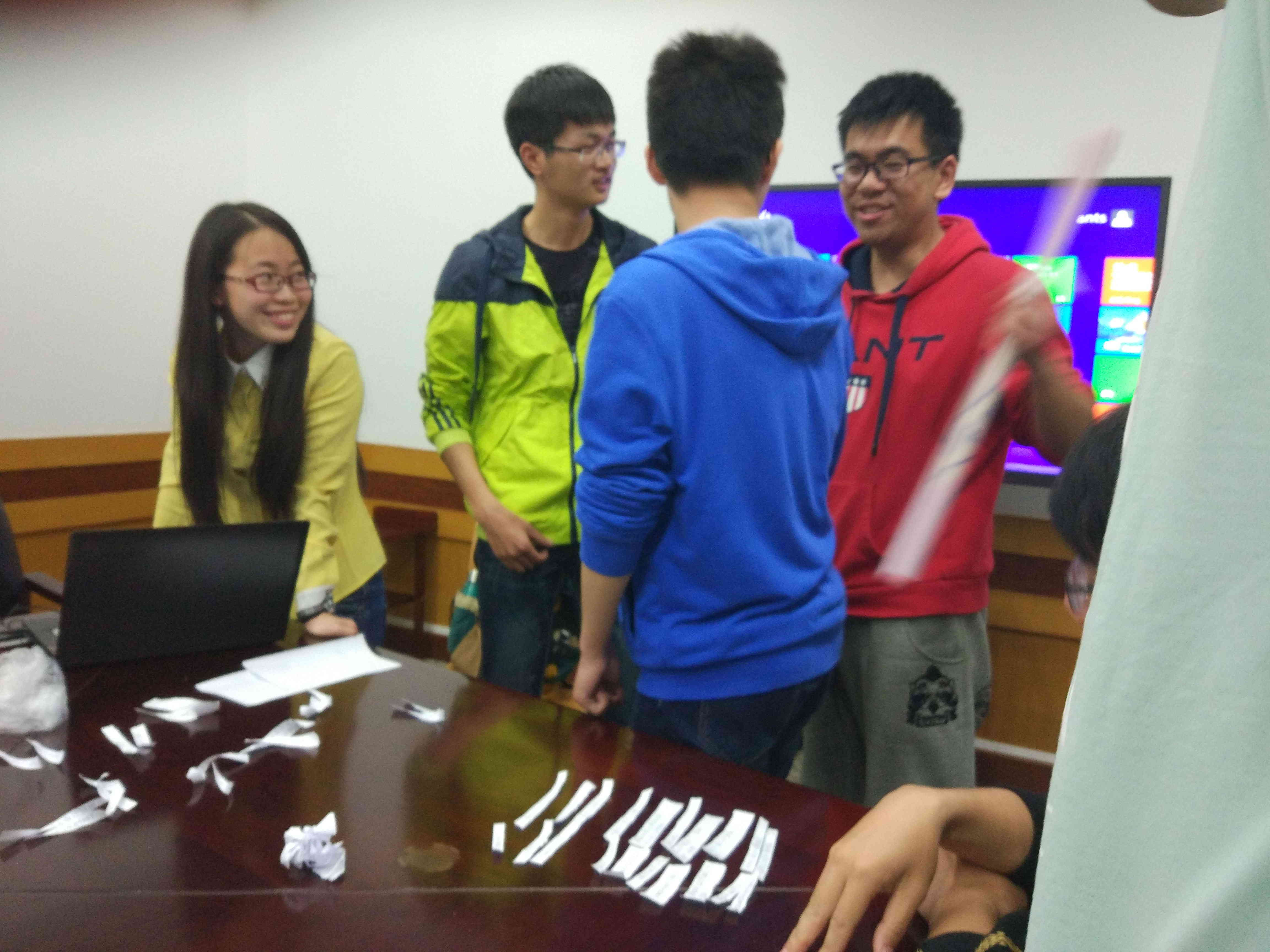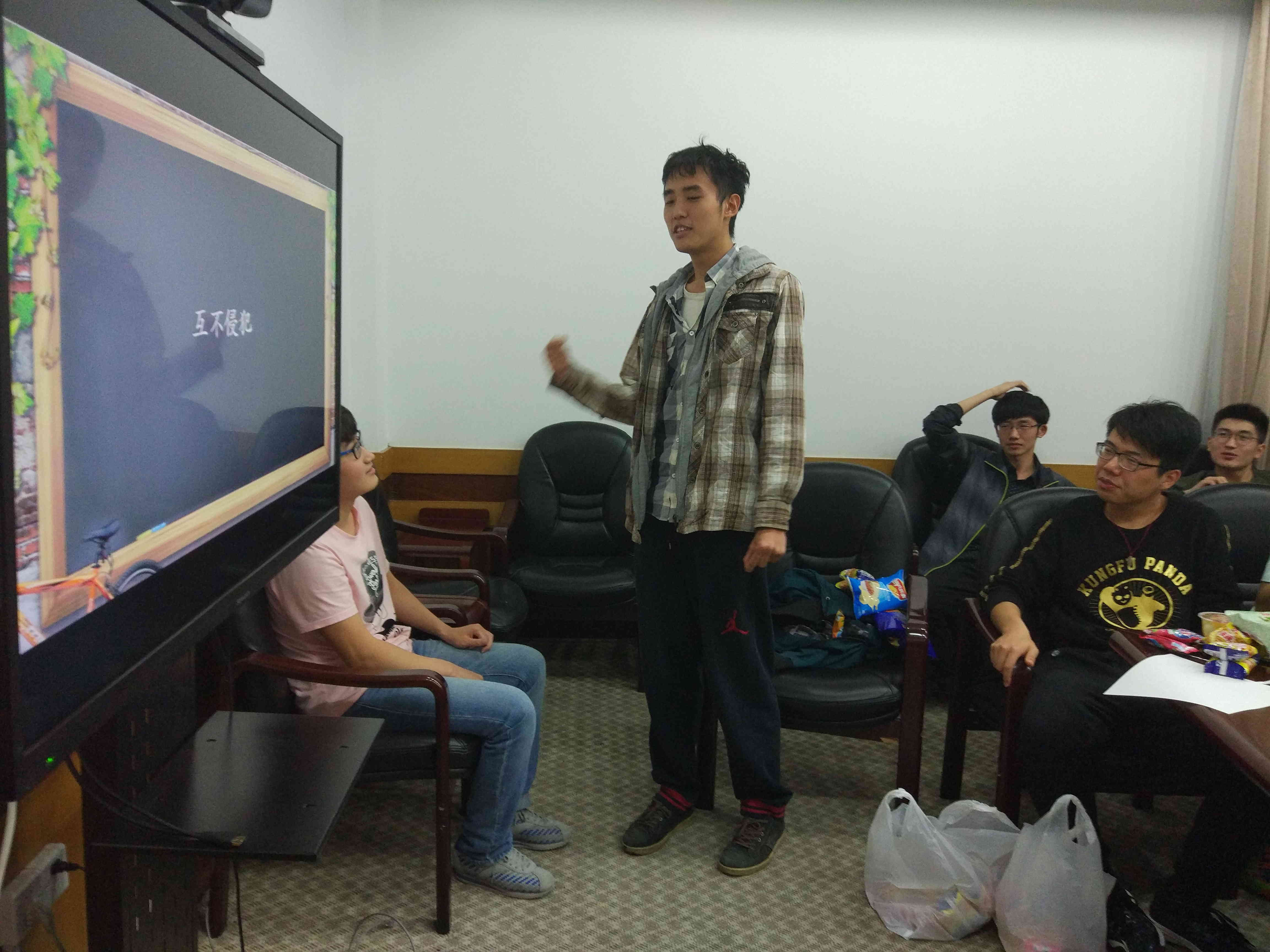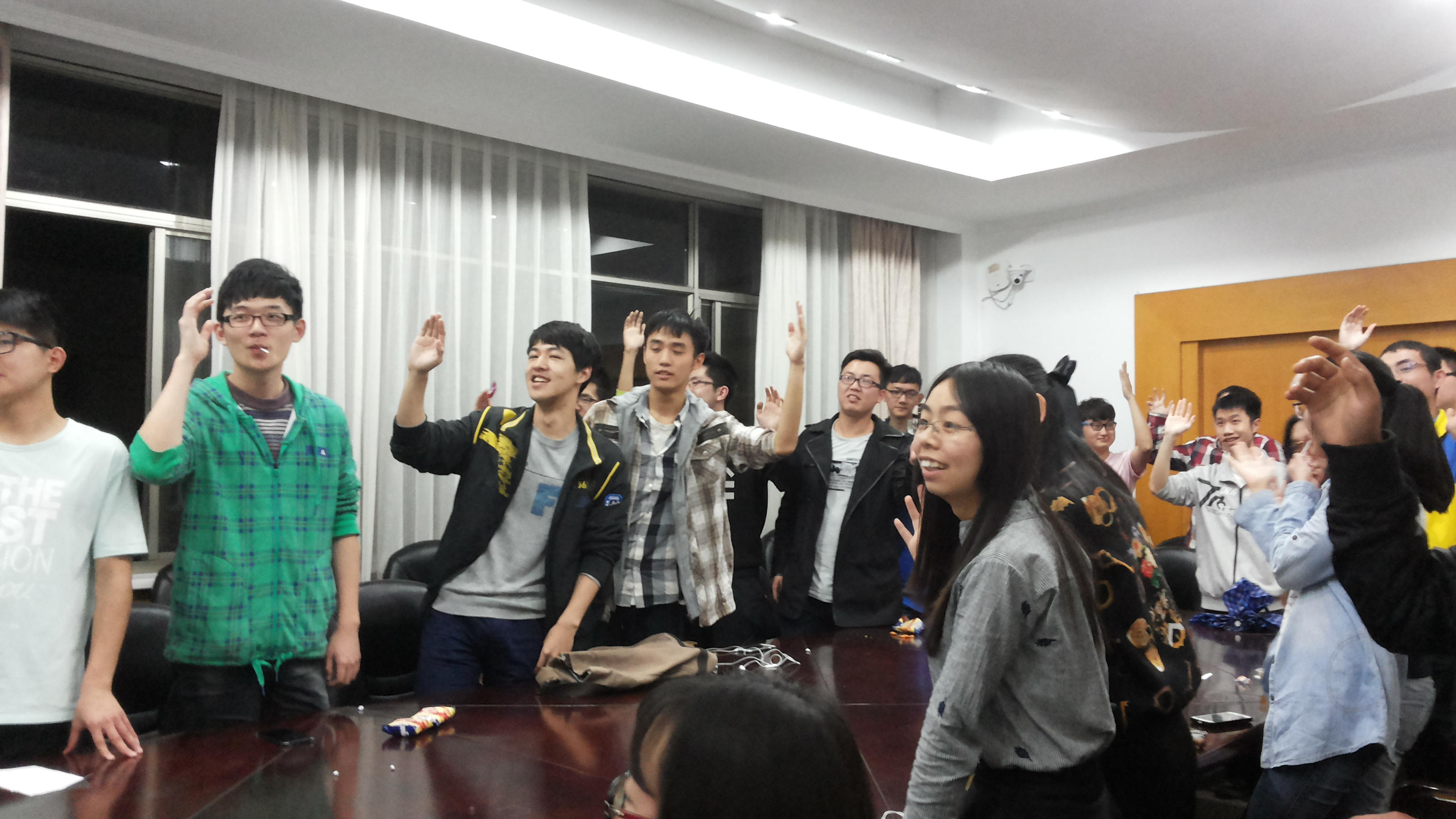 最后到了大家使出浑身解数的时候,“生存大考验”环节要求全体成员通过判断正误的方式进行答题,举左手为正,右手为误,回答错误的同学坐下,最后剩下的同学为胜利者。也许是题目有点偏难,第一题我们就有一大半的同学不幸“阵亡”,而在接下来的几题中,剩下的选手坚持战斗,最后以一位选手单挑成功证明了“真理往往掌握在少数人手中”,大家纷纷对他致以真挚的祝贺。