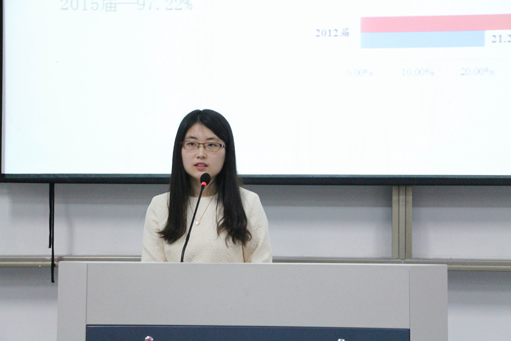最后,赵梓杉老师根据往届毕业生升学就业情况做了详细介绍。对于免研,就业以及出国等各个方面的规划也都给出了指导性的建议。在该环节,赵老师结合数据图表为在座的同学们总结了一些就业过程中的共性问题,并希望13级同学在未来升学就业过程中能够采取主动的态度,通过学校就业指导中心网站等渠道搜集更多的信息帮助自己寻找更适合的发展空间。