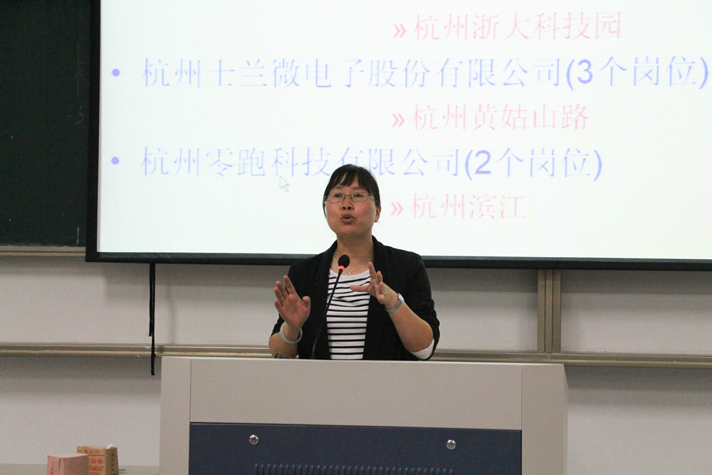 接下来电气专业的王慧芳老师及卢琴芬老师、自动化专业的许力老师分别介绍了各专业学科2013级 “卓越计划”的企业实习单位,企业对学生的要求以及各专业学科实施“卓越计划”的管理与考核办法等。对于电气专业的电自和电控方向,王慧芳老师与卢琴芬老师分别向与会同学介绍了“卓越计划”合作企业浙江省电力设计院、杭州市电力设计院、东元总合科技(杭州)、杭州士兰微电子股份有限公司等企业的具体情况,并就暑期企业实习报名细则进行了说明。许力老师首先介绍了自动化专业卓越计划的总体安排,对杭州鸿雁电器、杭州中粮包装等企业进行了一一介绍。