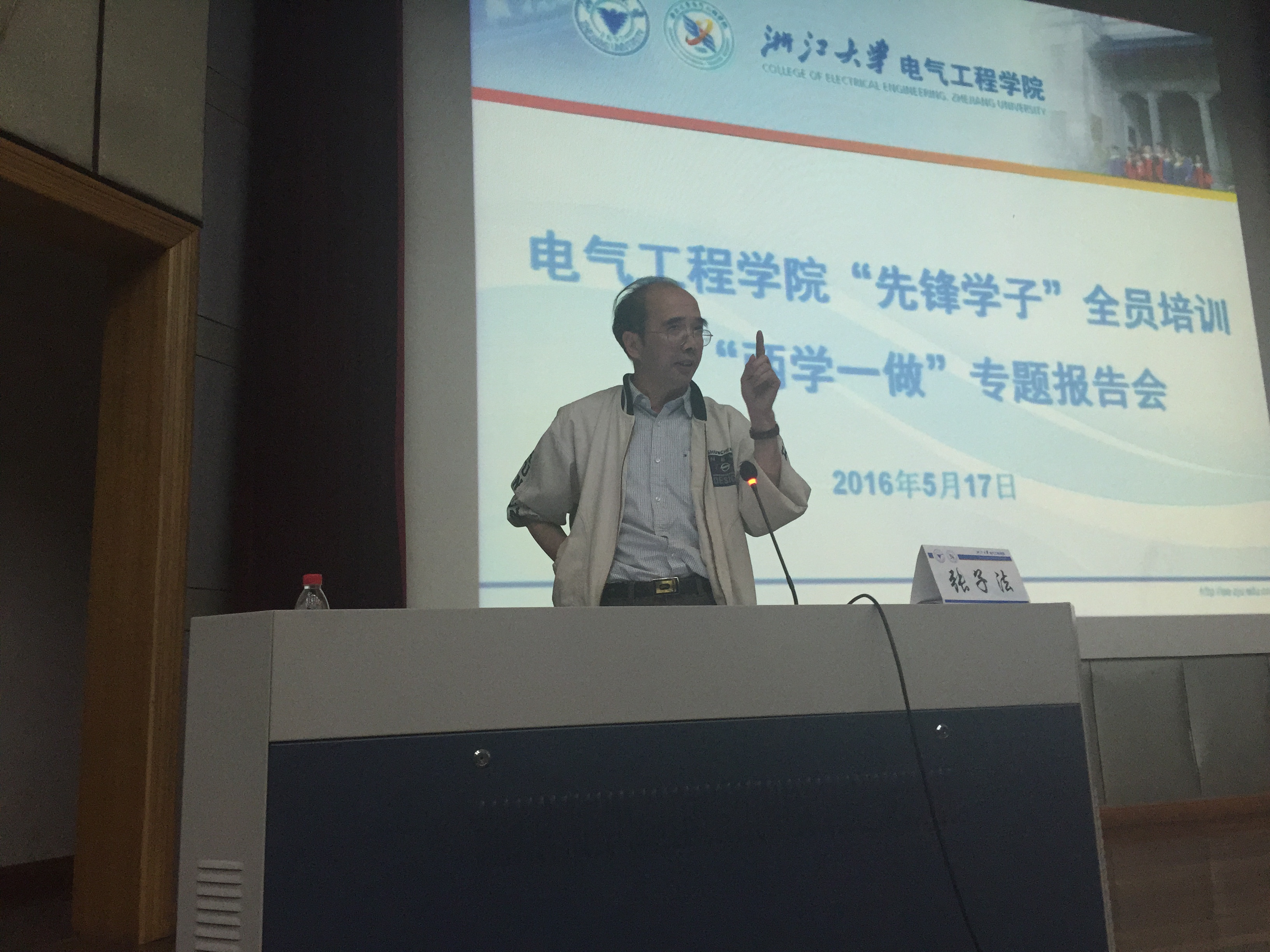 5月17日晚,电气工程学院“先锋学子”全员培训暨“两学一做”专题报告会在教七影视厅顺利举行。本次报告会邀请到中共浙江大学纪律检查委员会委员、副书记兼办公室副主任、监察处副处长张子法老师为学院师生讲解中国共产党廉洁自律的传统文化基因。出席本次报告会的还有学院党委书记王瑞飞老师、党委副书记陈敏老师、院长助理沈建新老师、团委全体辅导员以及全体学生正式党员。