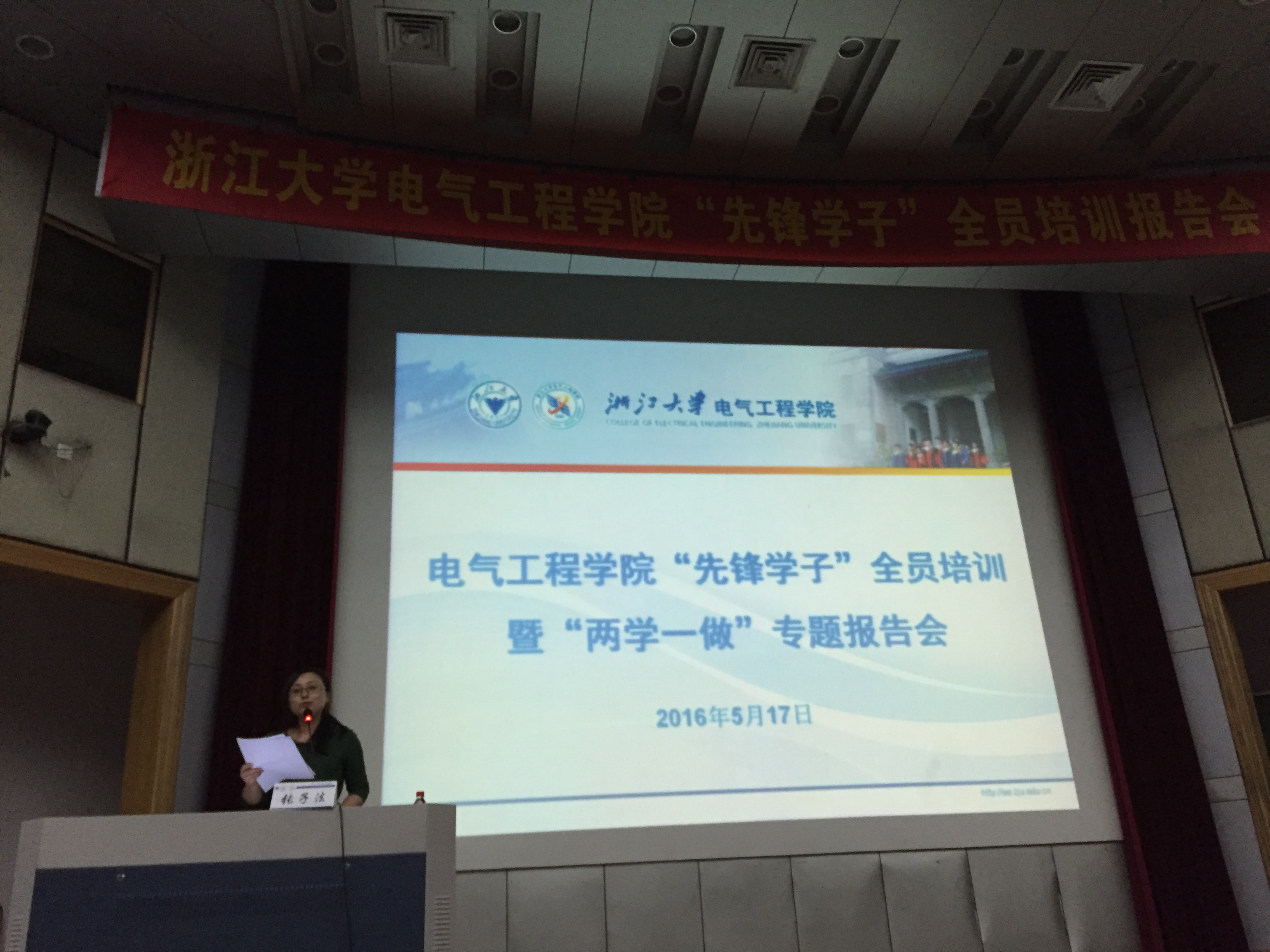 5月17日晚,电气工程学院“先锋学子”全员培训暨“两学一做”专题报告会在教七影视厅顺利举行。本次报告会邀请到中共浙江大学纪律检查委员会委员、副书记兼办公室副主任、监察处副处长张子法老师为学院师生讲解中国共产党廉洁自律的传统文化基因。出席本次报告会的还有学院党委书记王瑞飞老师、党委副书记陈敏老师、院长助理沈建新老师、团委全体辅导员以及全体学生正式党员。
