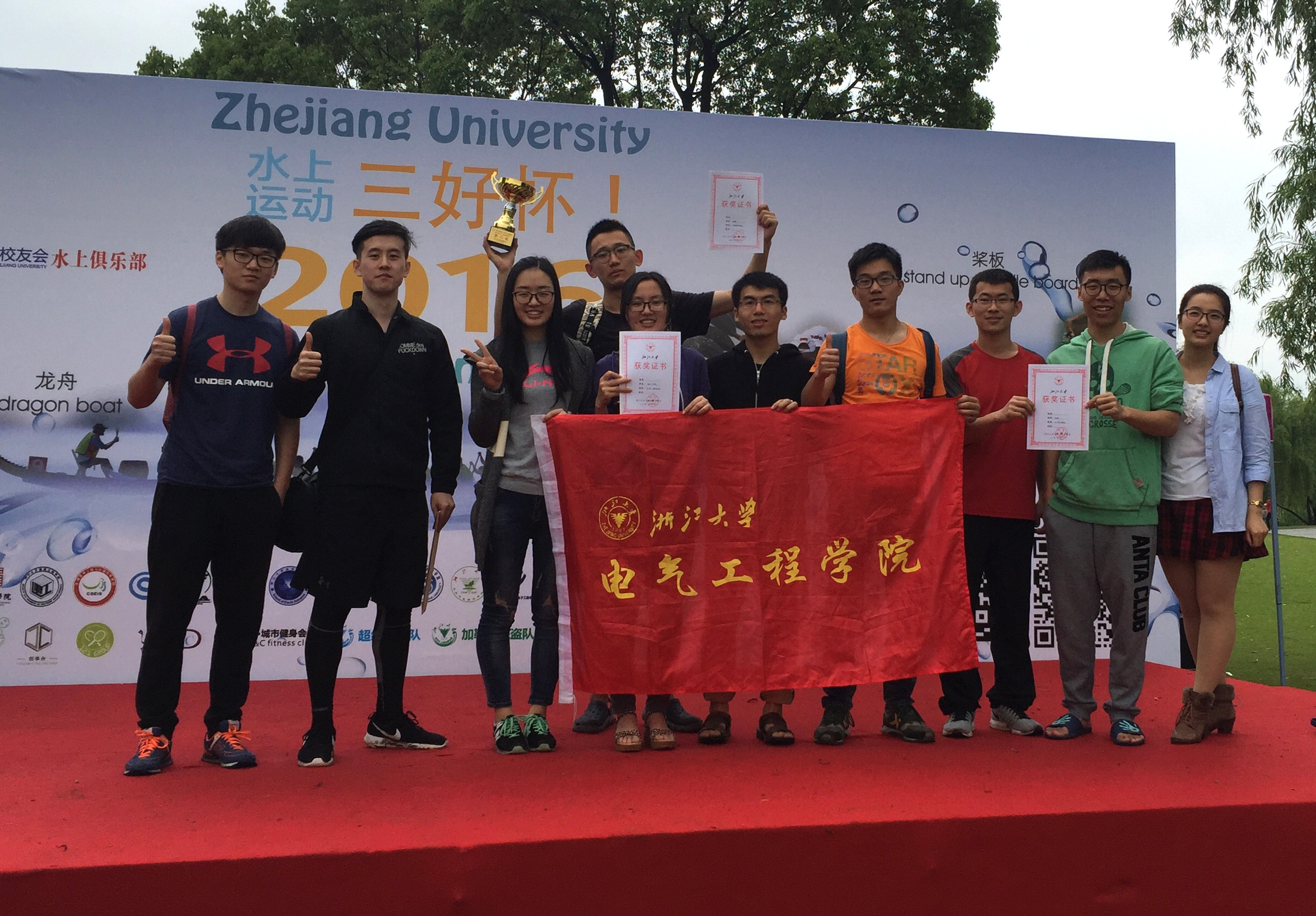 为了推动学校群众体育活动的开展,丰富校园体育文化生活,加强师生凝聚力和团队精神,展现各学院办学特色与风采,由浙江大学体育运动委员会主办的“三好杯”水上比赛项目,于2016年5月21日,暨浙江大学建校119周年之际,在浙江大学紫金港校区启真湖上开赛。本次比赛分为本科生组和研究生组,电气学院参与的竞赛项目有:团体龙舟、男子双人皮划艇、男子单人皮划艇、男女混双皮划艇。