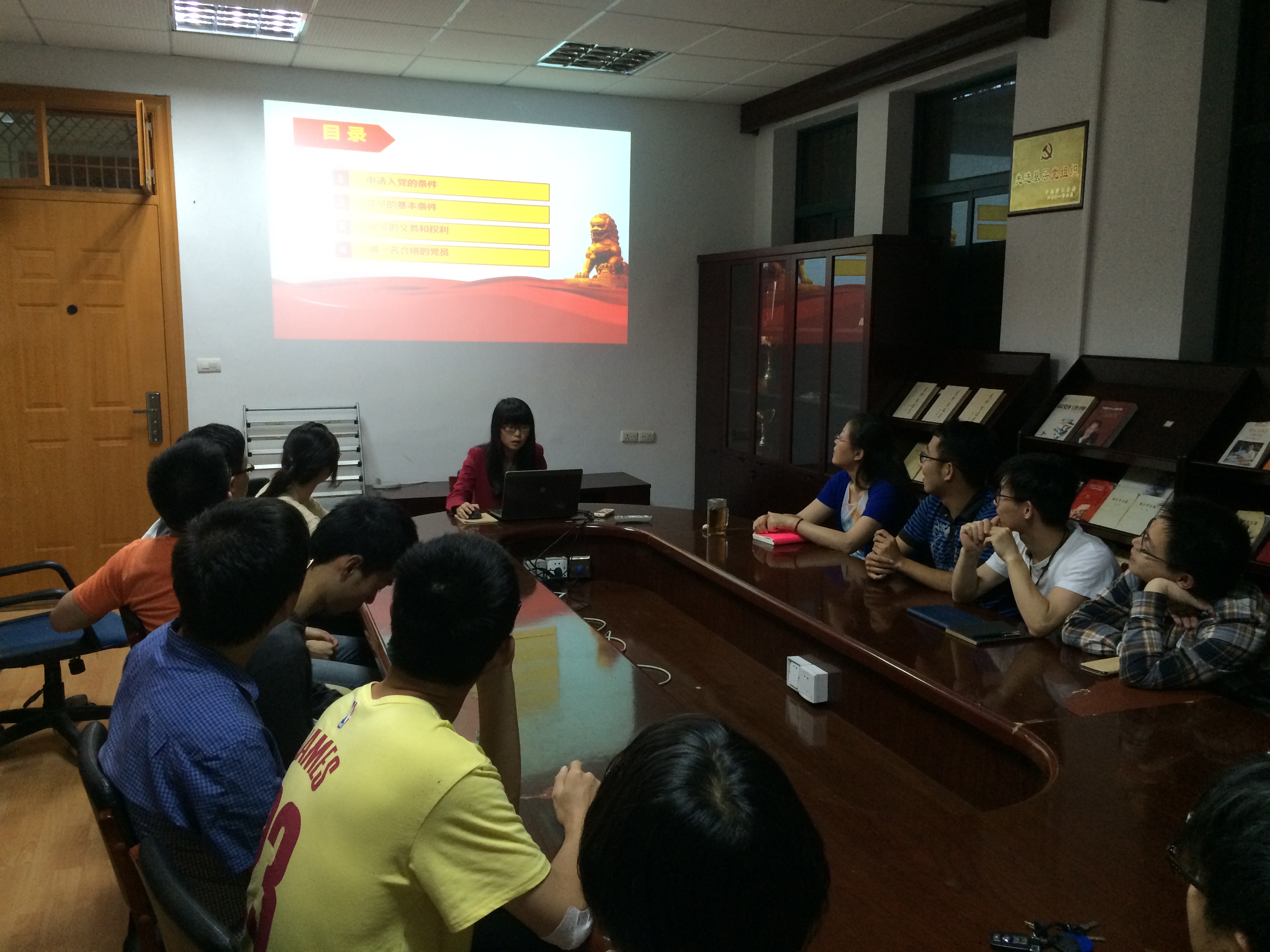 本次理论学习首先由主讲人徐韵扬同志从历史进程的角度对申请入党的条件进行了说明,主要涉及到从中共一大到十八大中的入党条件的演变过程,从这个变化过程中可以体会到入党条件随着时代的前进,思想的进步正在一步步地深化和完善,同时条件也越来越严格,体现了党在吸收党员的时候更加追求其先进性和纯洁性。然后,徐韵扬同志也讲解了党员的基本条件内容,从党章出发总结出党员应该具备的三个特性:觉悟,服务,普通。通过这三个特性对党员的基本条件进行了全面的解读和拓展。
