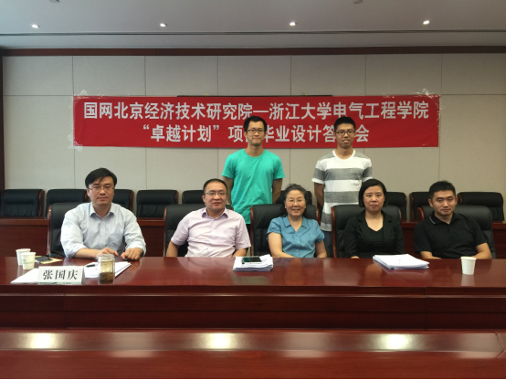 2016年5月27日下午,国网北京经济技术研究院——浙江大学电气工程学院“卓越计划”项目毕业设计答辩会在北京市未来科技城会议室内召开。答辩小组评委包括国网北京经济技术研究院的宋璇坤总工程师和科技部李敬如主任,自动化及控制设计研究中心的肖智宏主任,哈尔滨工业大学的张国庆老师,华北电力大学的贾科老师等。参加答辩的是电气工程学院电气工程及其自动化专业的许奕斌、谢敦见两位同学。