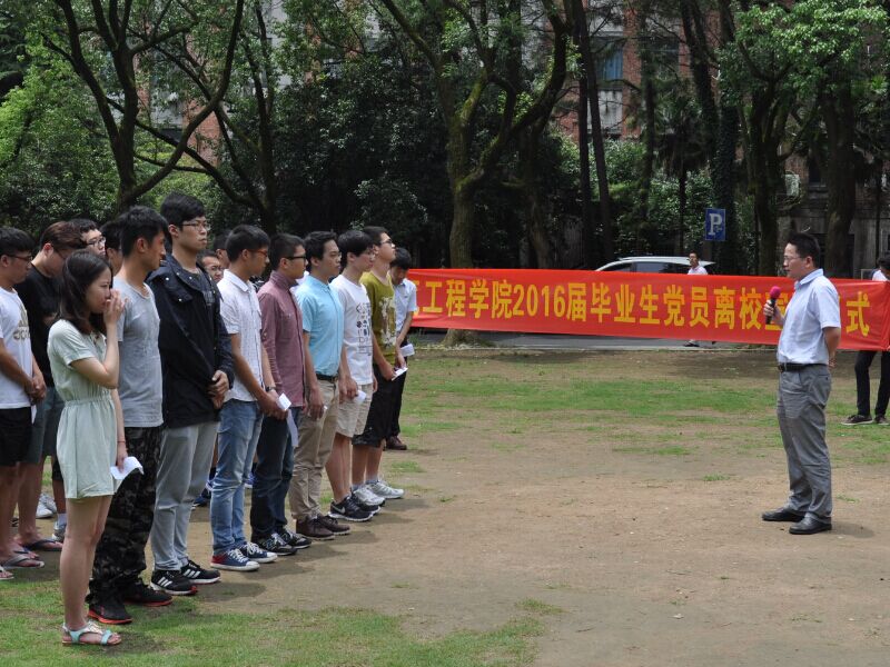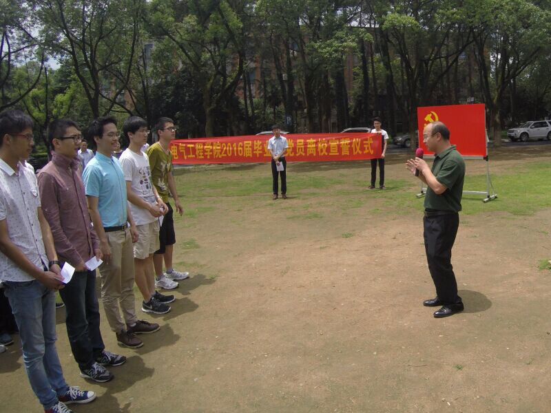 为了增强毕业生党员的责任意识与使命感,激励大家在新的岗位上继续拼搏、锐意进取,6月21日电气工程学院在玉泉校区竺可桢像前隆重举行2016届毕业生党员离校宣誓仪式。这项活动是电气工程学院党员教育“微计划”之“微仪式”的重要内容,旨在增强党员意识和提升党员素质。