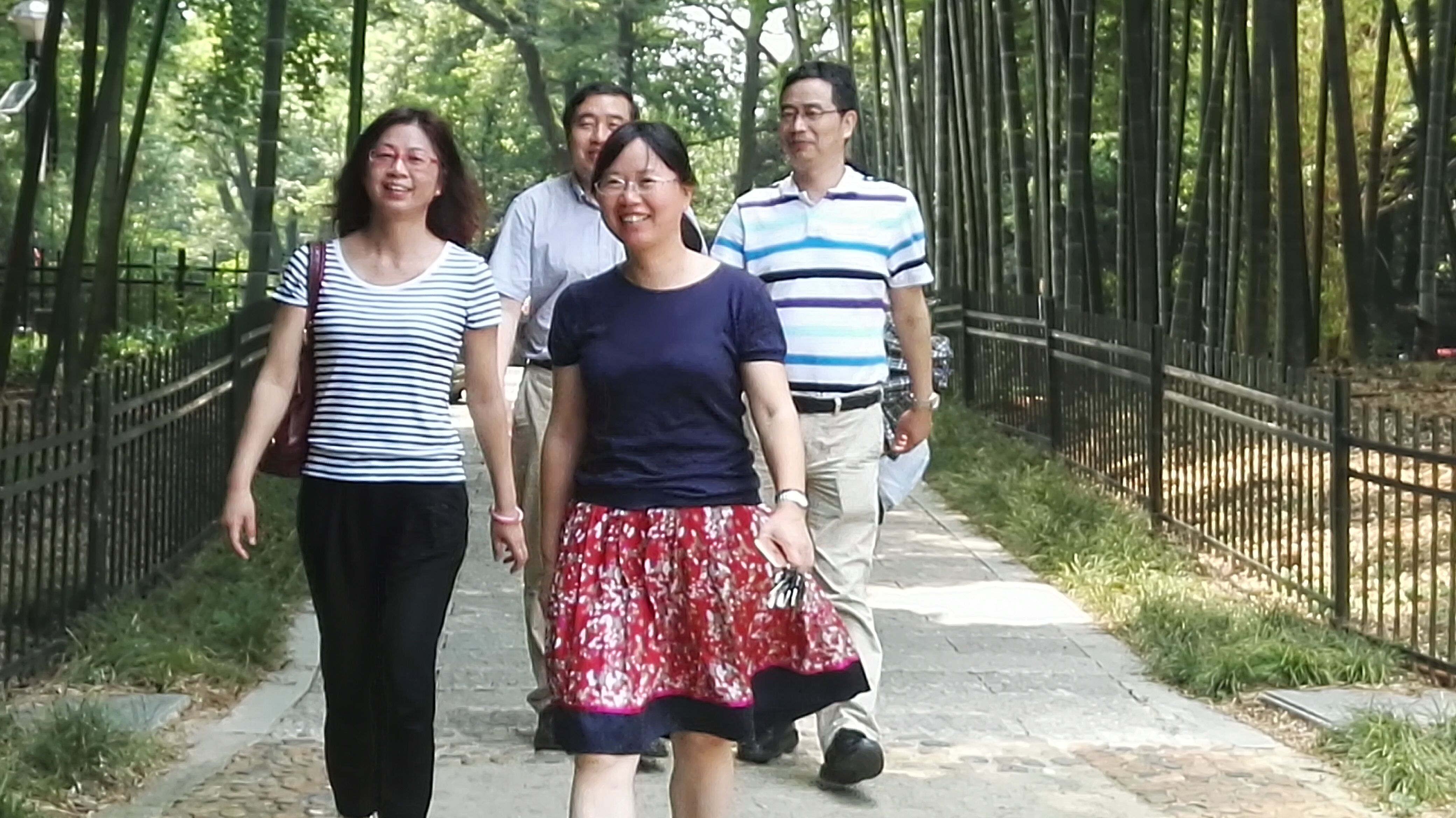 老师们放下平日里繁重的工作,觅得这片刻的闲暇,一路上欢声笑语,谈天说地。不经意间,大家就走到了植物园门口的竹园——本次活动的终点。难得的聚集让大家的情绪更加高涨,时不时的互相打趣,或者来个合影留念,使得现场的笑声不断,气氛热烈,老师们心情舒畅,精神愉悦。