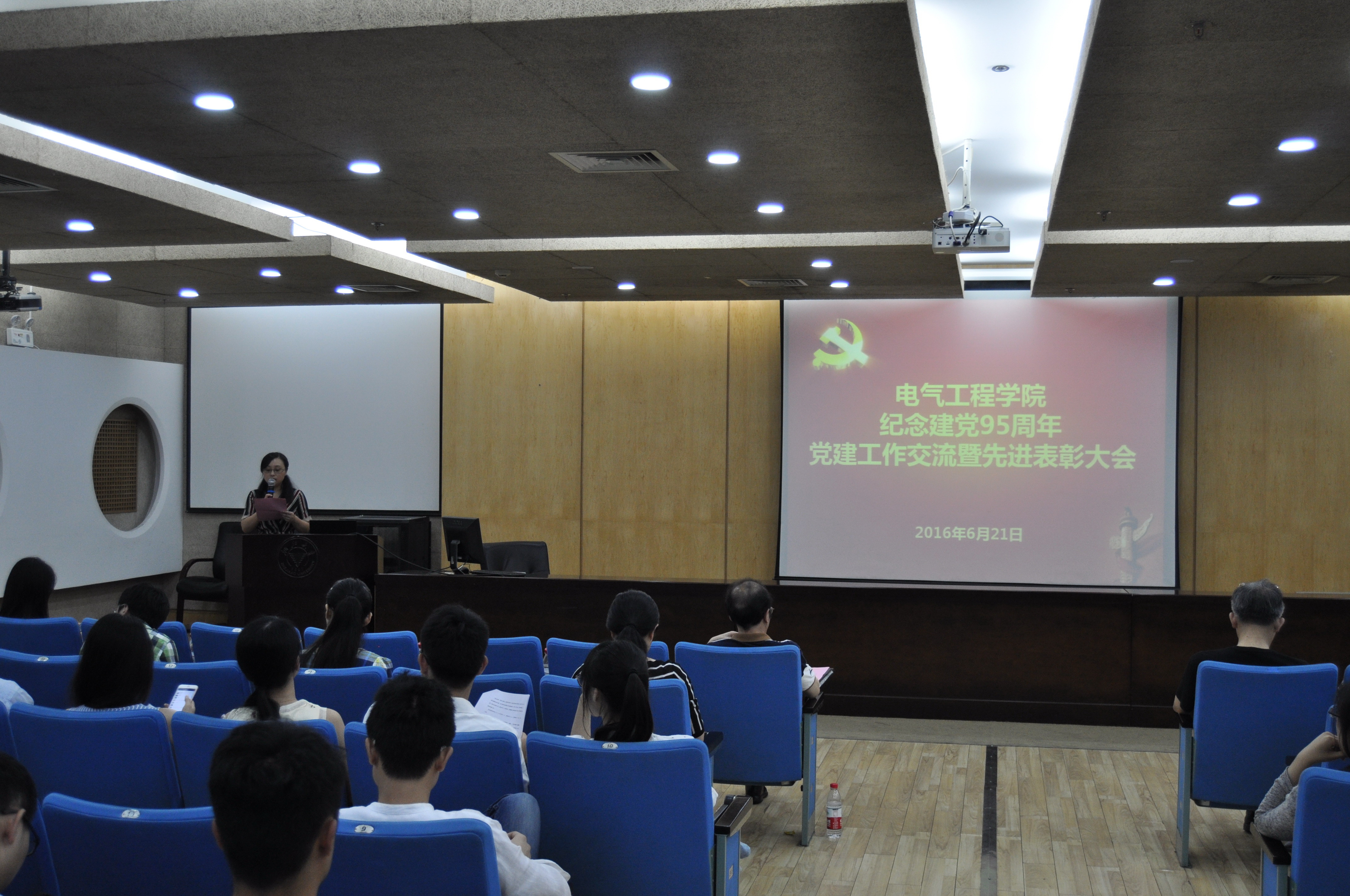 在中国共产党95华诞之际,2016年6月21日早上,电气工程学院在玉泉校区周亦卿科技大楼一楼报告厅隆重召开了纪念建党95周年党建工作交流暨先进表彰大会,巩固拓展党的群众路线教育实践活动和“三严三实”专题教育成果,扎实推进“两学一做”学习教育,进一步发挥先进典型的示范带动作用。学院党委书记兼副院长王瑞飞、各党总支委员、各支部书记、毕业生党员以及各支部党员代表参加了表彰大会。大会由学院党委副书记陈敏主持。