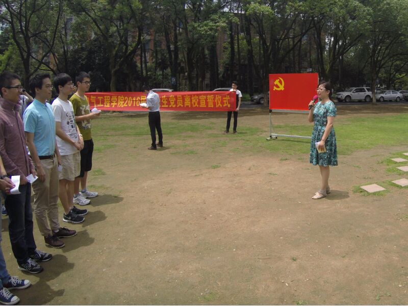 为了增强毕业生党员的责任意识与使命感,激励大家在新的岗位上继续拼搏、锐意进取,6月21日电气工程学院在玉泉校区竺可桢像前隆重举行2016届毕业生党员离校宣誓仪式。这项活动是电气工程学院党员教育“微计划”之“微仪式”的重要内容,旨在增强党员意识和提升党员素质。