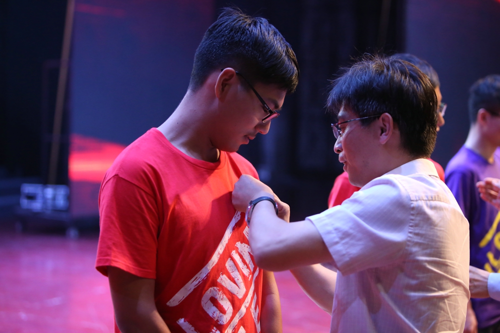 在佩戴院徽环节中,学院领导给新生代表佩戴上承载着电气学院百年荣耀的院徽,历史的交接棒已经传递到新一代电气人手中,希望同学们锐意进取、奋力拼搏,让院徽散发出更耀眼的光芒。