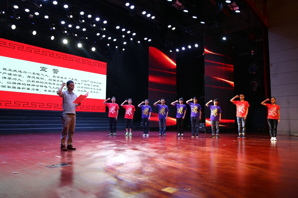 “从今天起,我正式成为一名电气人,我将秉承‘求是、创新’的浙大校训,发扬‘严谨治学、厚德载物、自强不息、引领未来’的电气精神……”,9月25日晚,503名2016级本科生、研究生新生在庄严的宣誓中开启他们的电气之旅。满腹憧憬,相聚浙里;怀揣梦想,缘起电气!