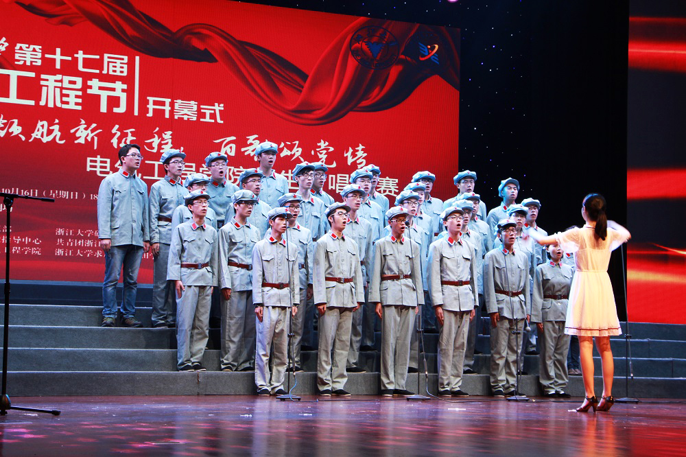 紧接着,合唱比赛序幕拉开,各个班级都激情满怀,积极地展现自己的青春风貌。从2016级博士班《走向复兴》的精彩开场到电气工程自动化1402班的《歌唱祖国》,从双控16级硕士班《爱我中华》到电力经济和系统班的《保卫黄河》,都气势轩昂地表达了对祖国的深厚感情。电气工程自动化1402班的《祖国不会忘记》、电力电子16硕的《中国人民解放军军歌》、电机航天所与电工电子16硕的《长江之歌》、电子信息工程1402班的《同一首歌》、电气工程及其自动化1405班的《我们的生活充满阳光》、自动化1401班的《中国军魂》也让整个比赛异彩纷呈。这些大气磅礴的爱国歌曲通过此起彼伏的激昂又悠扬的旋律表达了对中华民族至深的爱,唱出了中国梦,唱出了求是情,将比赛推向了一个又一个高潮。比赛期间,器乐合奏《茉莉花》更是带给观众别样的视听享受。由电气艺术特长生们演唱的《鸿雁》压轴出场,出彩的音色,丰沛的情感,赢得了同学们的阵阵欢呼。