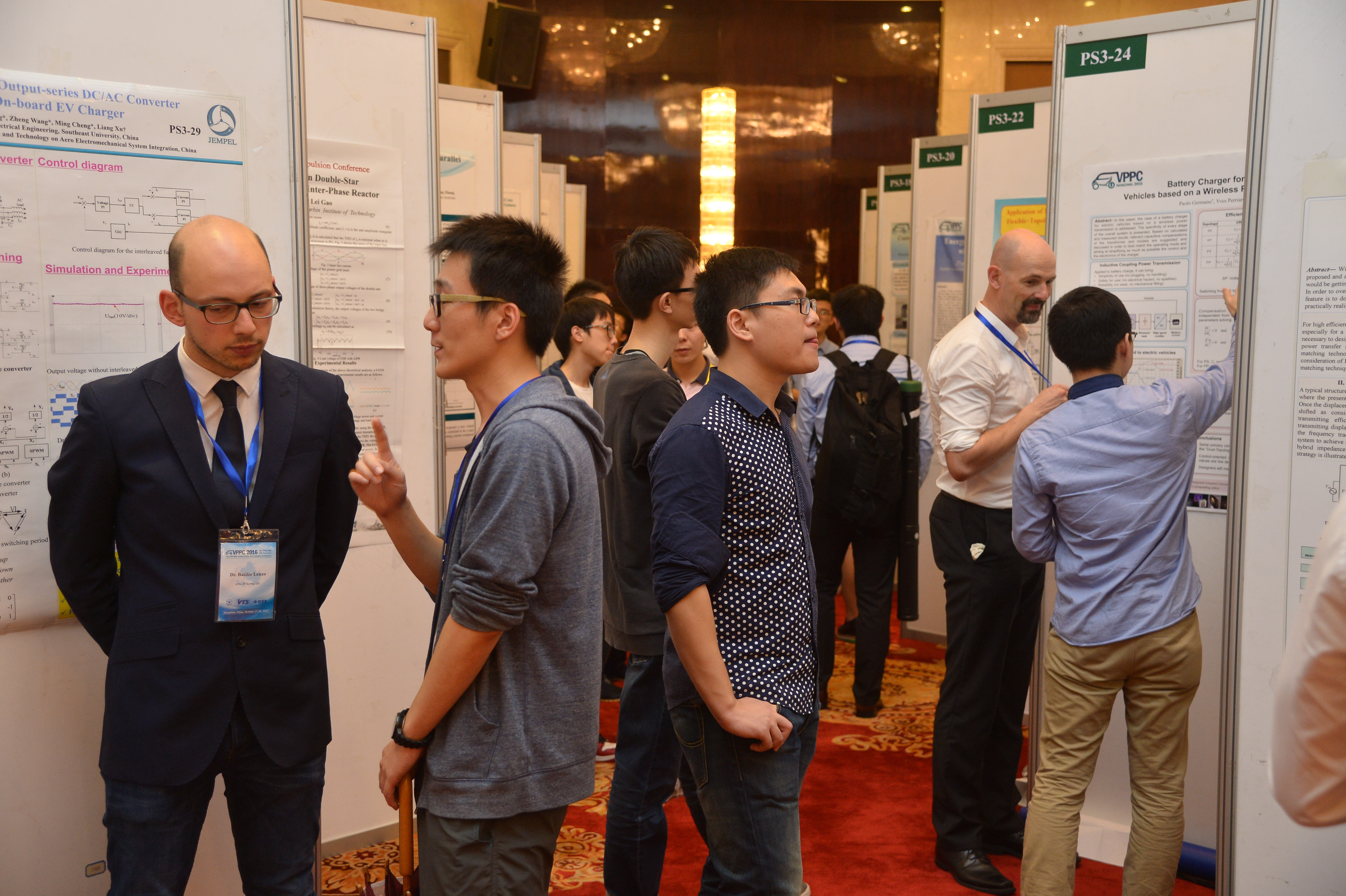 Room D中,展示者以Contactless Charging for Electric Vehicles EMC Issues in Electric VehiclesReliability and Durability Improvement of the Fuel Cell Systems in FCEV Energy Management of Electrical Hybrid Energy Sources for Zero Emission Vehicles等为主题,展示了包括电动车无线电力传输系统的非线性平面线圈互感的分析、基于逆变器损耗的无线功率传输系统补偿电容的优化、应用于电动汽车的无线电源传输系统恒流输出控制策略研究、关于车辆电场和磁场辐射共振点抑制的研究、对质子交换膜燃料电池预测综述等成果课题。