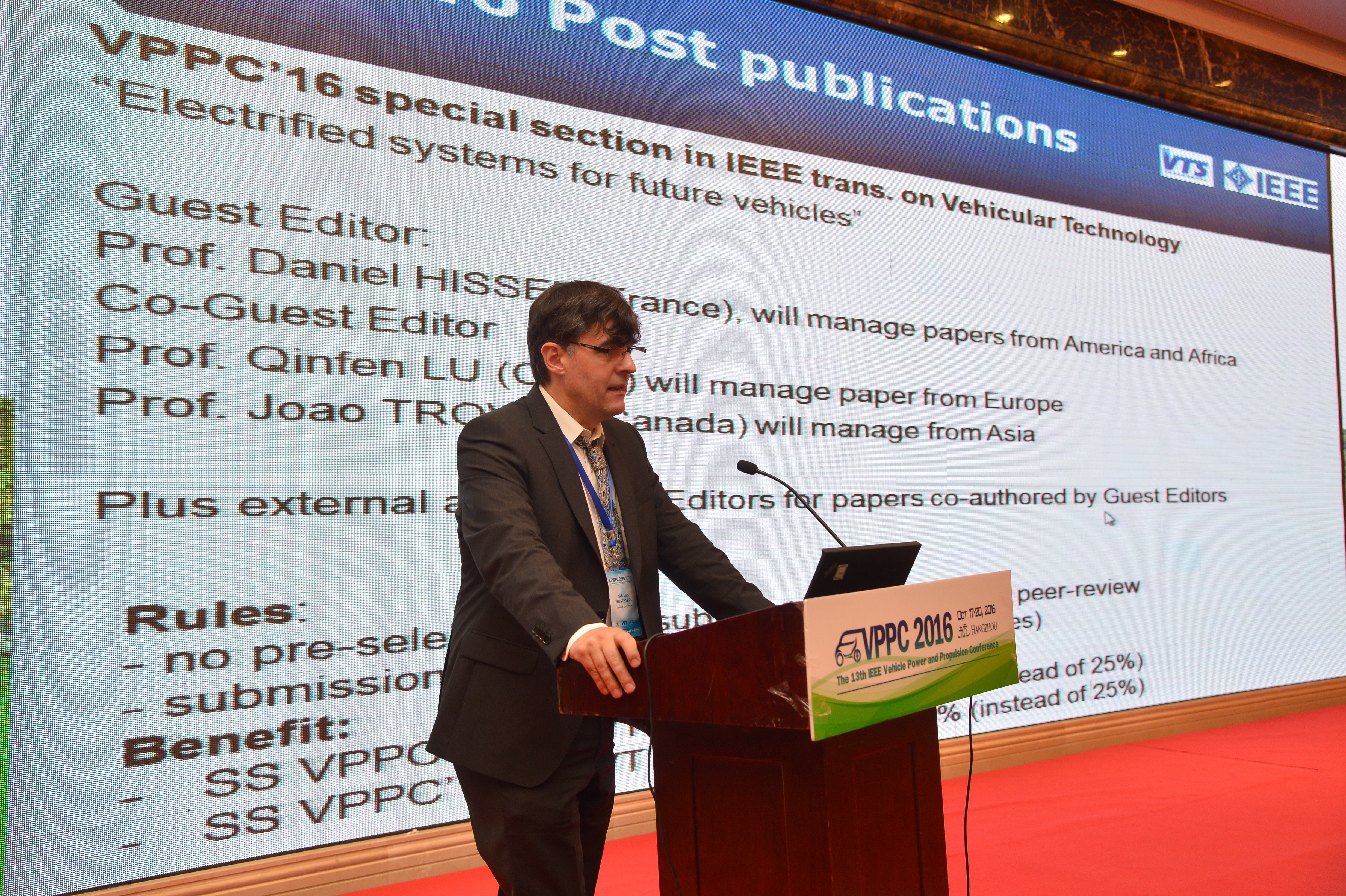 IEEE VTS VPPC技术委员会主席Alain Bouscayrol教授特别指出,VPPC2016会议论文可以投稿到IEEE trans. on Vehicular Technology和IET Electrical Systems for Transportation特刊上。