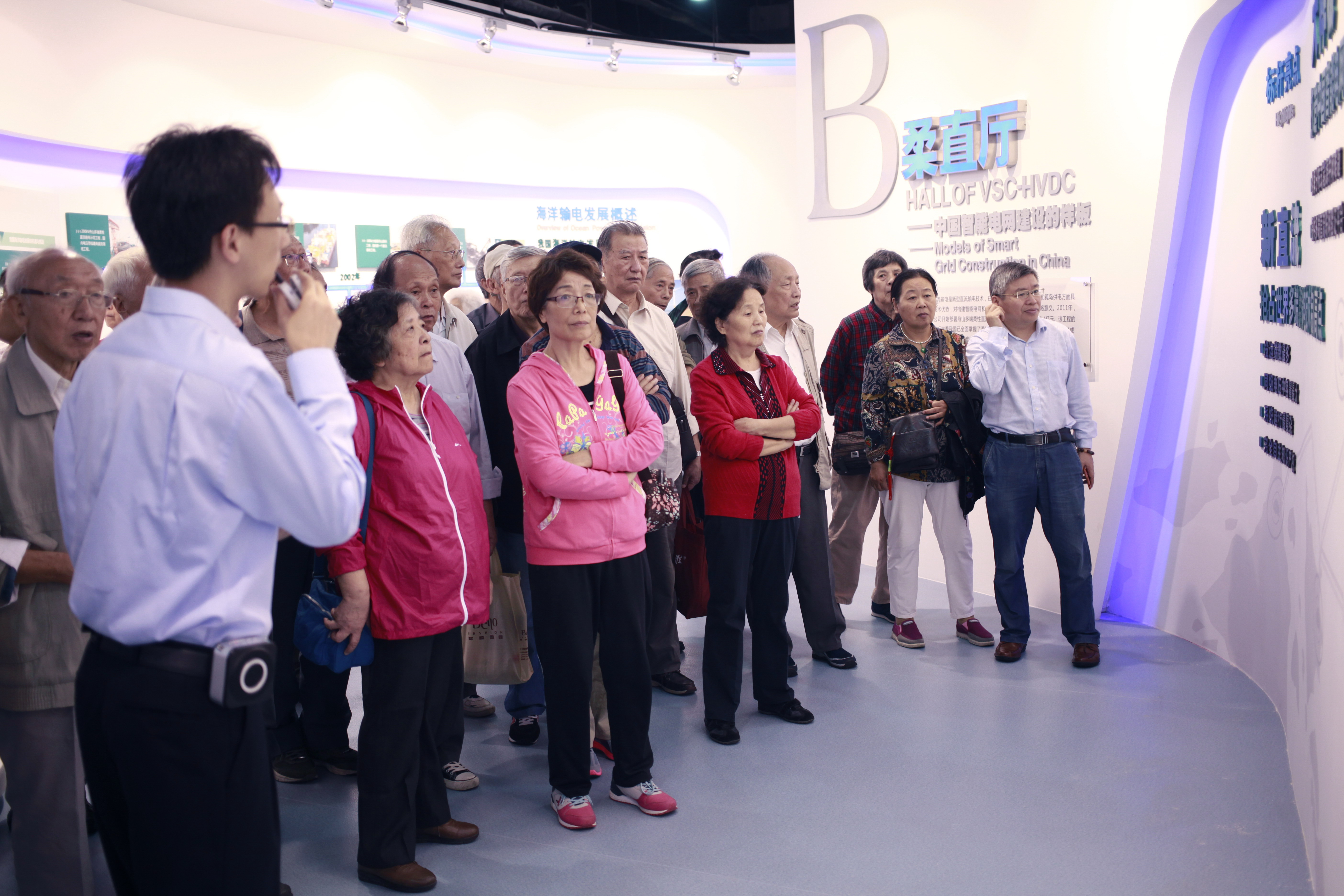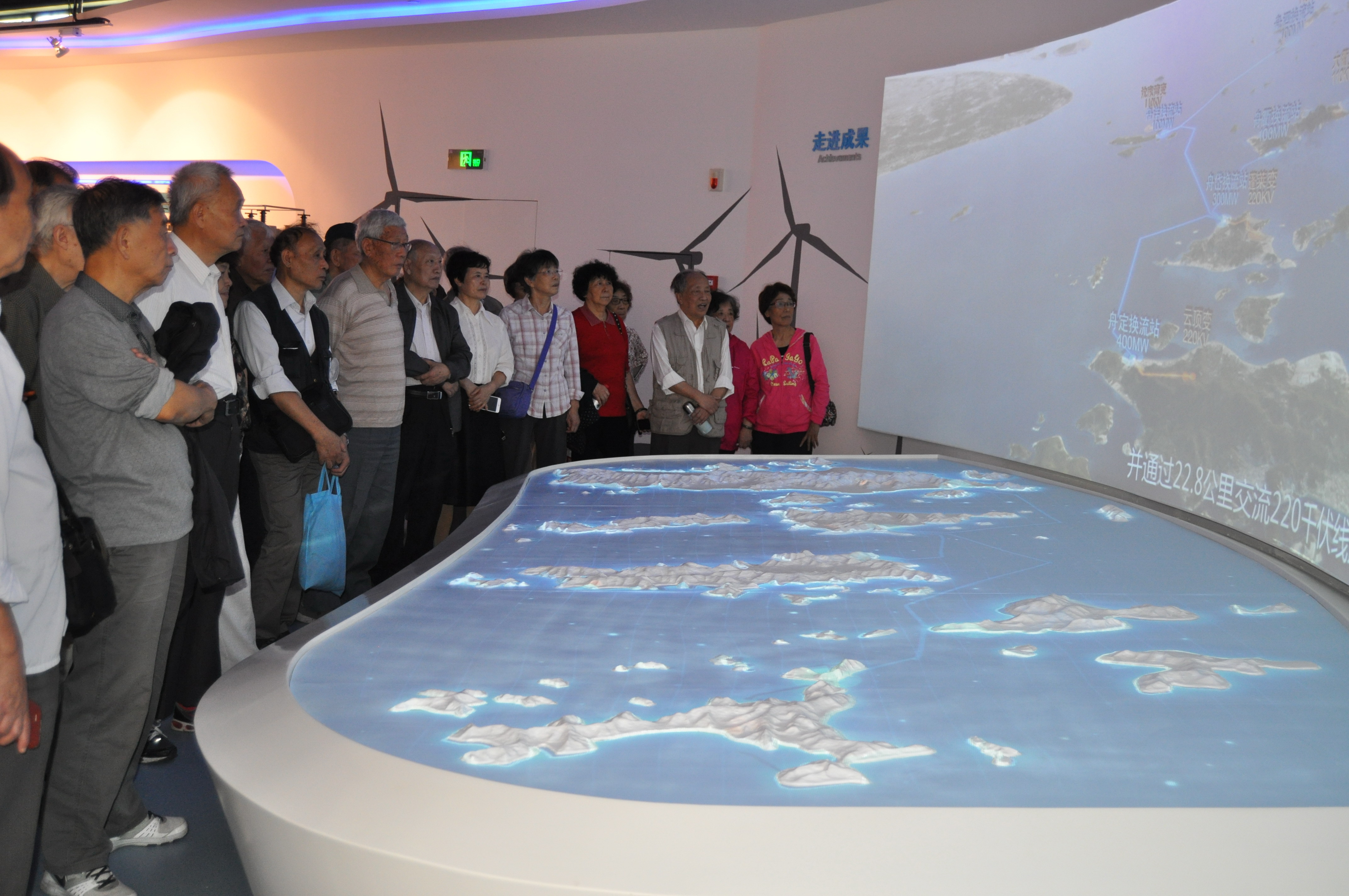 第二天,老师们来到舟山市 舟山群岛文化公园和舟山城市展示馆,了解了舟山别具一格的渔风民俗和源远流长的海岛历史;随后来到国家海洋输电实验基地,在“海洋输电、能通四海”主题展厅中,讲解人员详细介绍了海洋输电技术发展的主脉络,重点介绍了舟山多端柔性直流输电示范工程内容及成果,老师们还参观了海洋输电高压试验大厅。