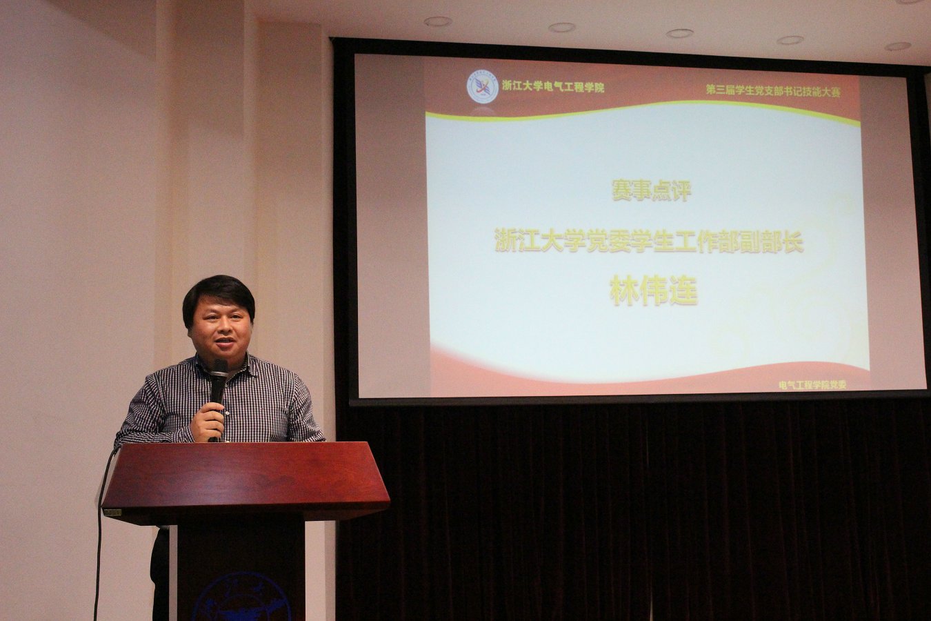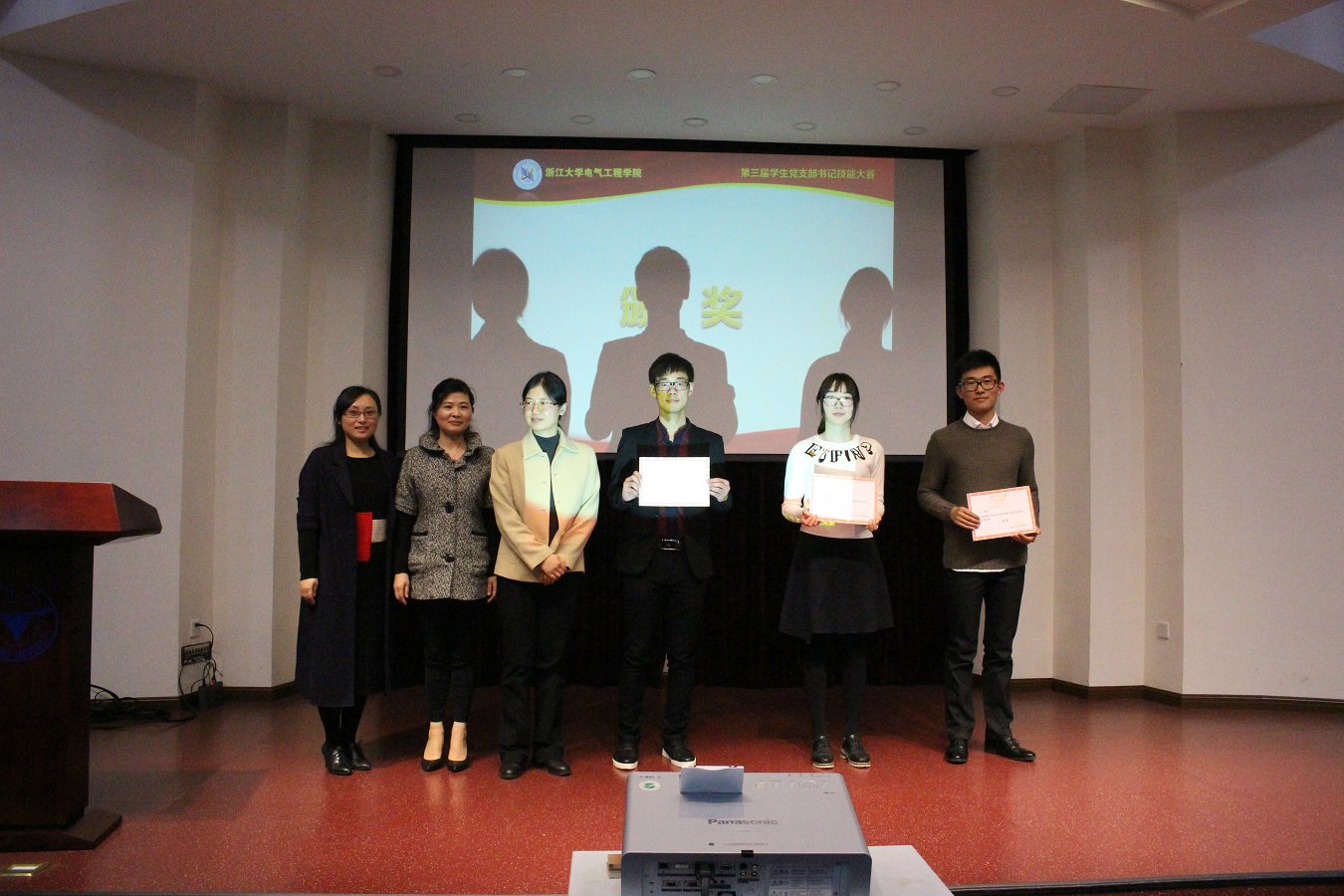 电气工程学院党委书记王瑞飞老师、浙江大学党委学工部副部长林伟连老师、浙江大学党委研工部副部长沈玉老师、计算机学院党委副书记姚青老师、浙江大学党委组织部组织工作室主任叶建英老师、浙江大学电气工程学院党委副书记陈敏老师应邀担任本次比赛的评委。电气学院学生党支部书记、支部委员、部分党员到场观摩学习。