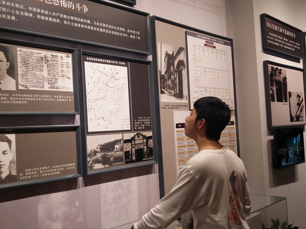 从山上下来后,我们到了此行的另一个目的地——中国共产党杭州历史馆。了解历史、居安思危是每一个大学生应有的意识,我们也趁这样一个明媚的下午,在历史馆党员的引导下,参观了历史馆。又一次重走建党之路,又一次思考和平的不易,让这样一个下午变得更有意义。