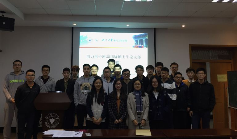 2016年11月8日下午6点30分,寒风凛冽中,24名党员和积极分子带着红彤彤的脸庞进入到第二教学楼121教室,电力电子所2015级硕士生党支部预备党员接收大会及微党课活动由此展开。这次会议由党支书沈莉娟主持,分为两个主旨,一是接收谭园和王腾飞两位积极分子成为预备党员;二是开展班级微党课活动,进行主题展示和心得分享。